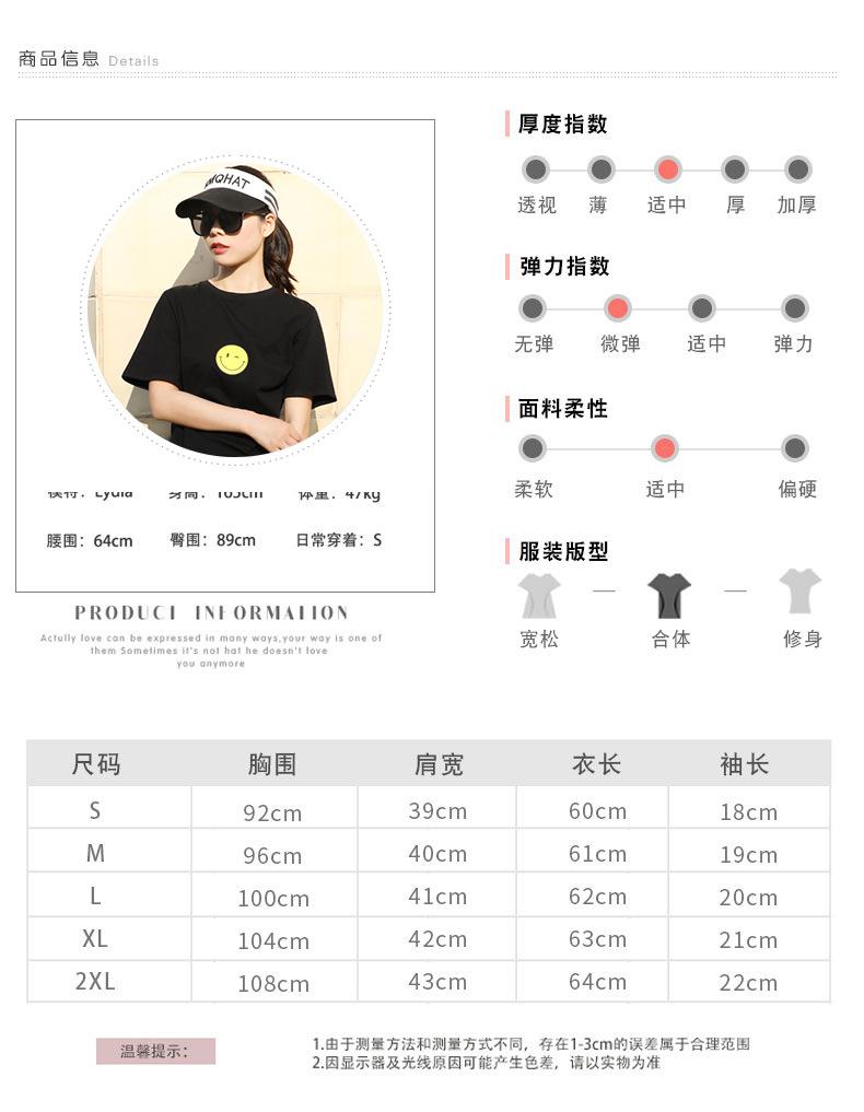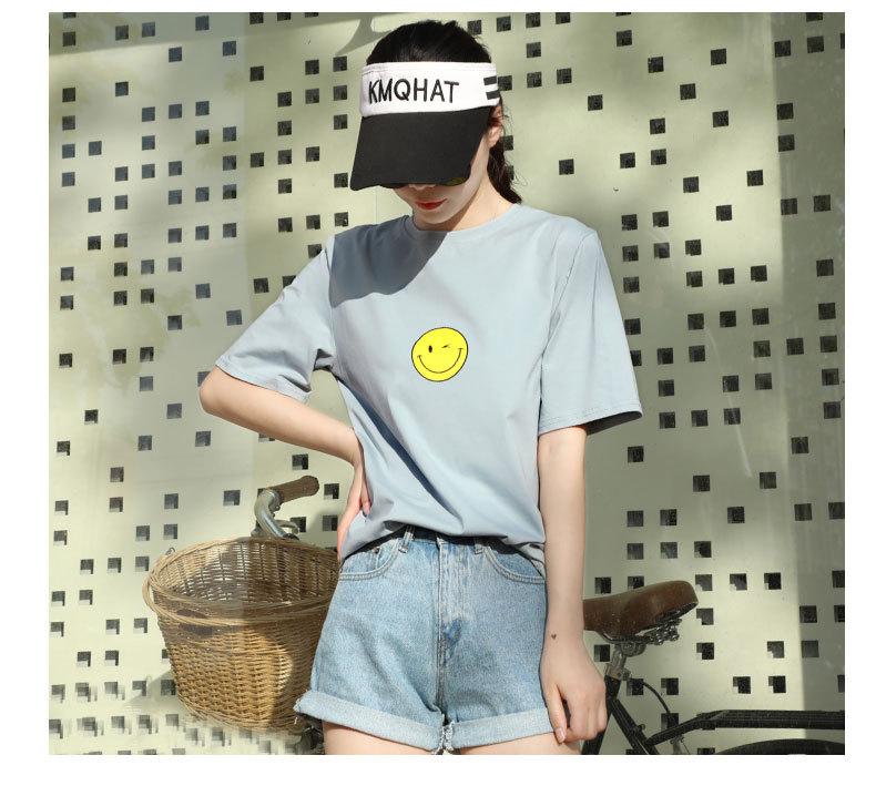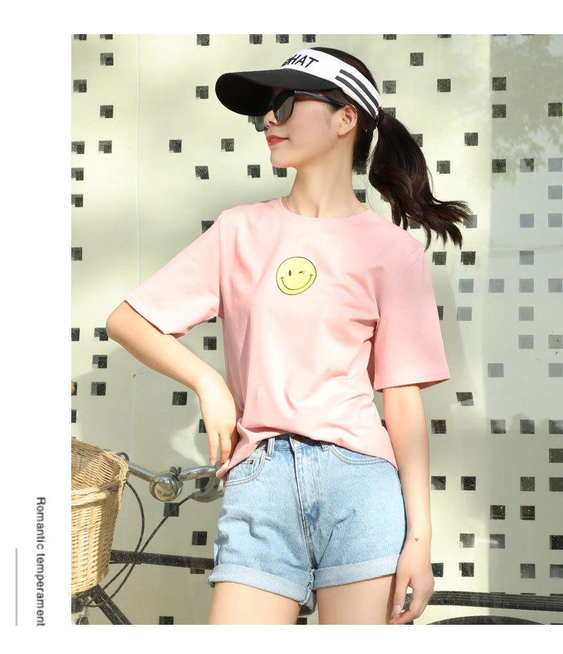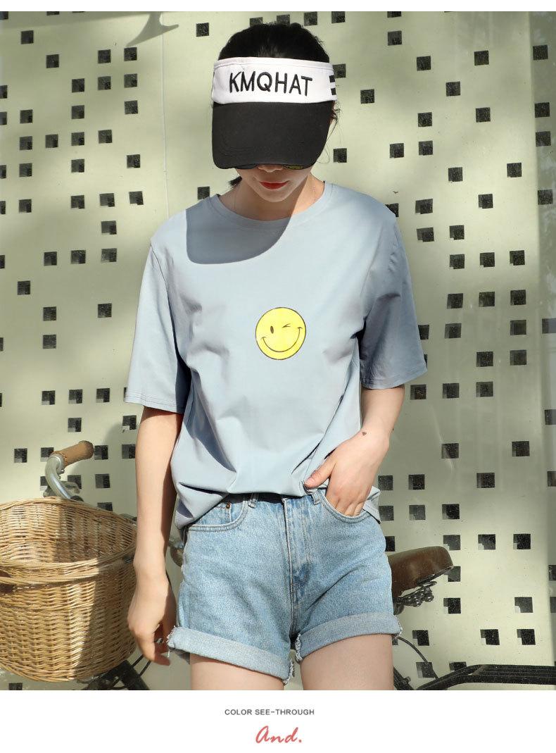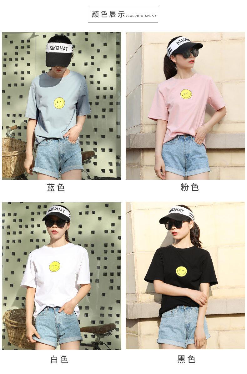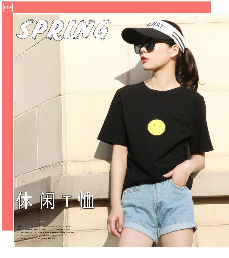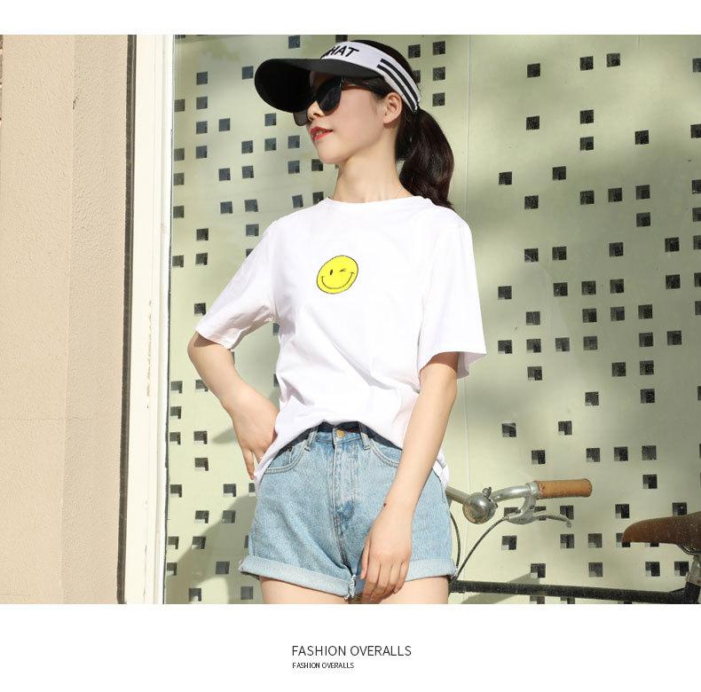Verano 2020 nueva camiseta de algodón para mujer patrón de cara sonriente manga corta venta al por mayor de fábrica soporte una generación
