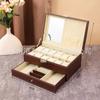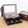 Caja de joyería de doble capa directa de fábrica con ventana, caja de exhibición para 12 relojes, caja de cuero, caja de almacenamiento multifuncional