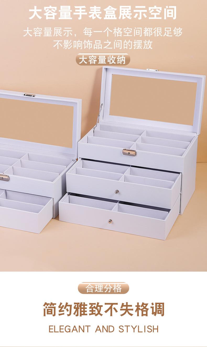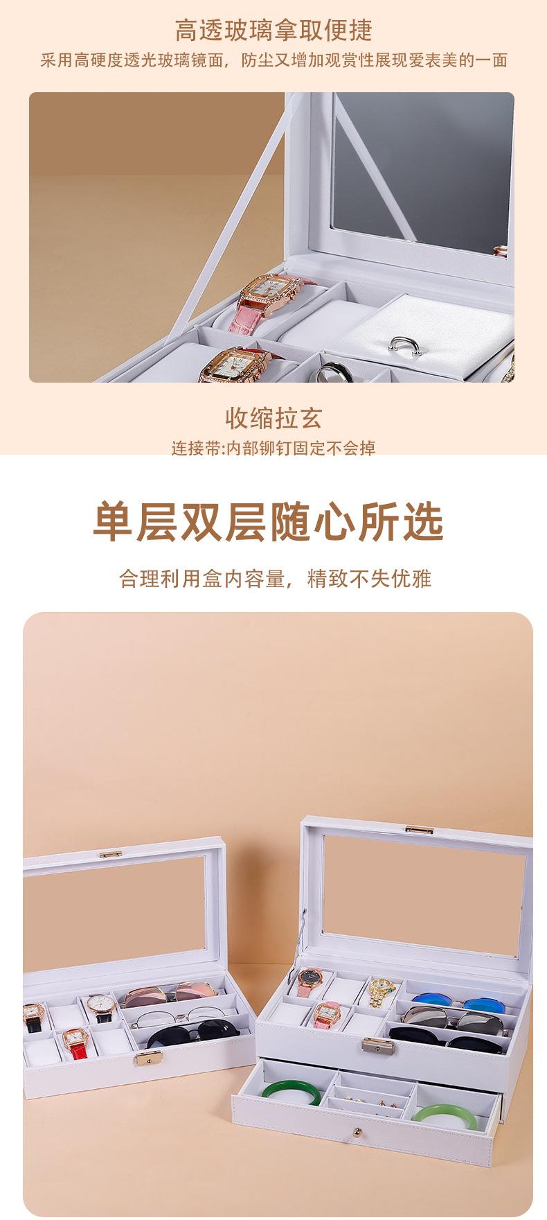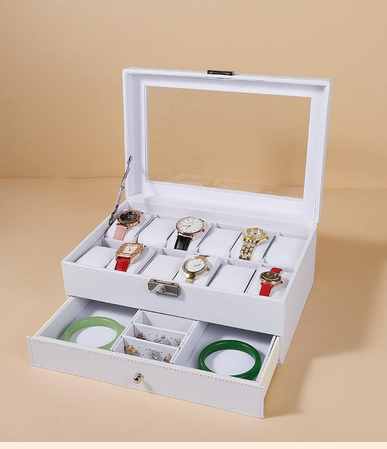 En stock, venta al por mayor, caja de joyería para reloj de doble capa, caja de almacenamiento de gafas de reloj de gran capacidad, caja de exhibición para gafas de sol, caja de joyería