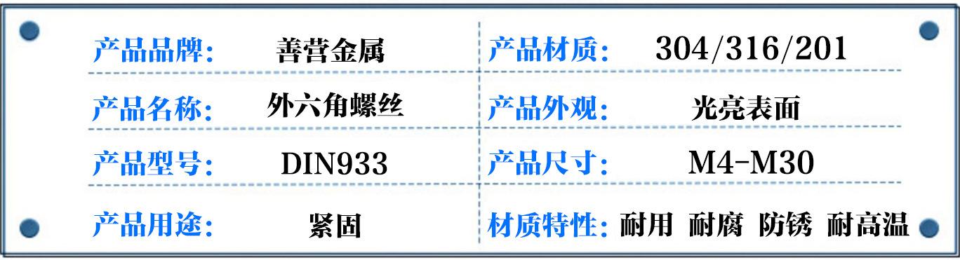 Tornillo Hexagonal Exterior de Acero Inoxidable 201 Tornillo Hexagonal M22-M30 * 20/25/30/40
