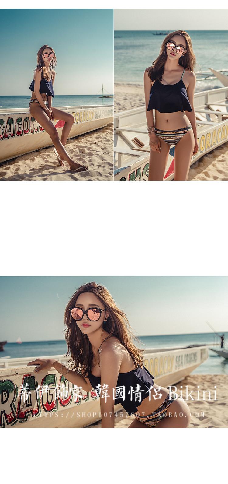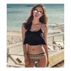 Venta al por mayor de fábrica traje de baño negro con volantes y abertura sexy retro con soporte de acero bikini de cintura baja chica delgada aguas termales