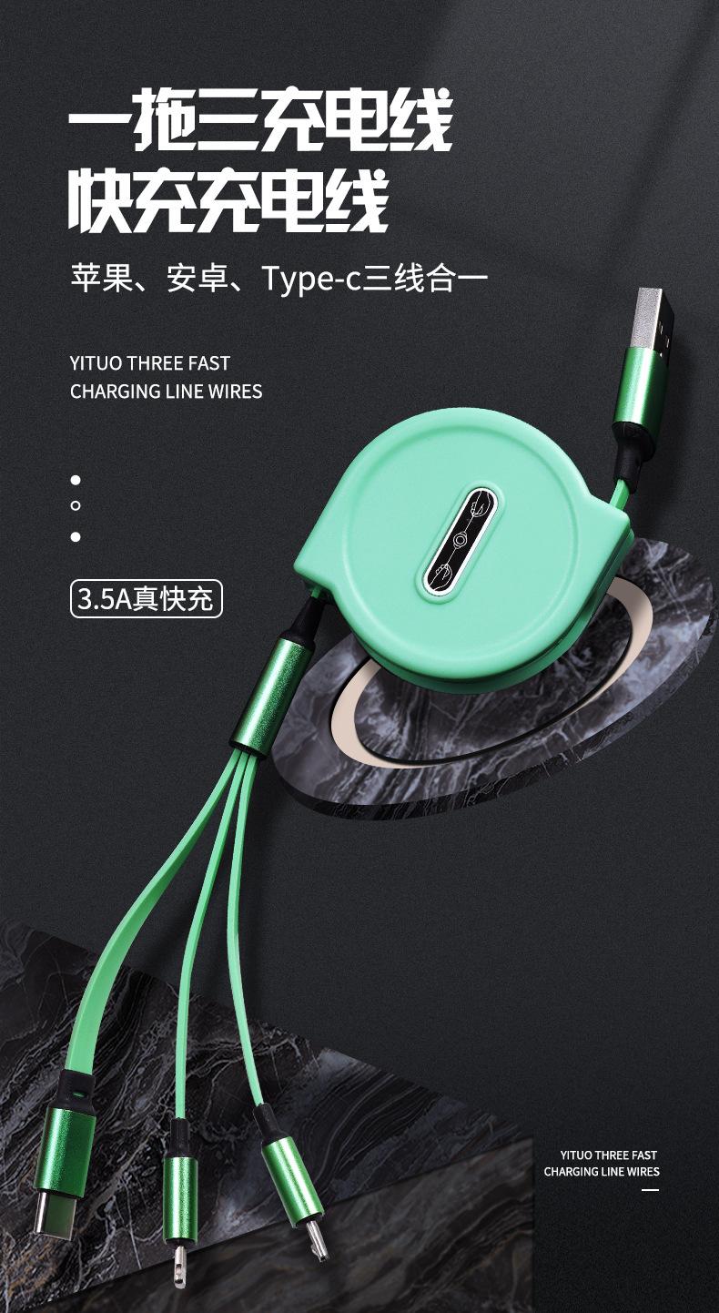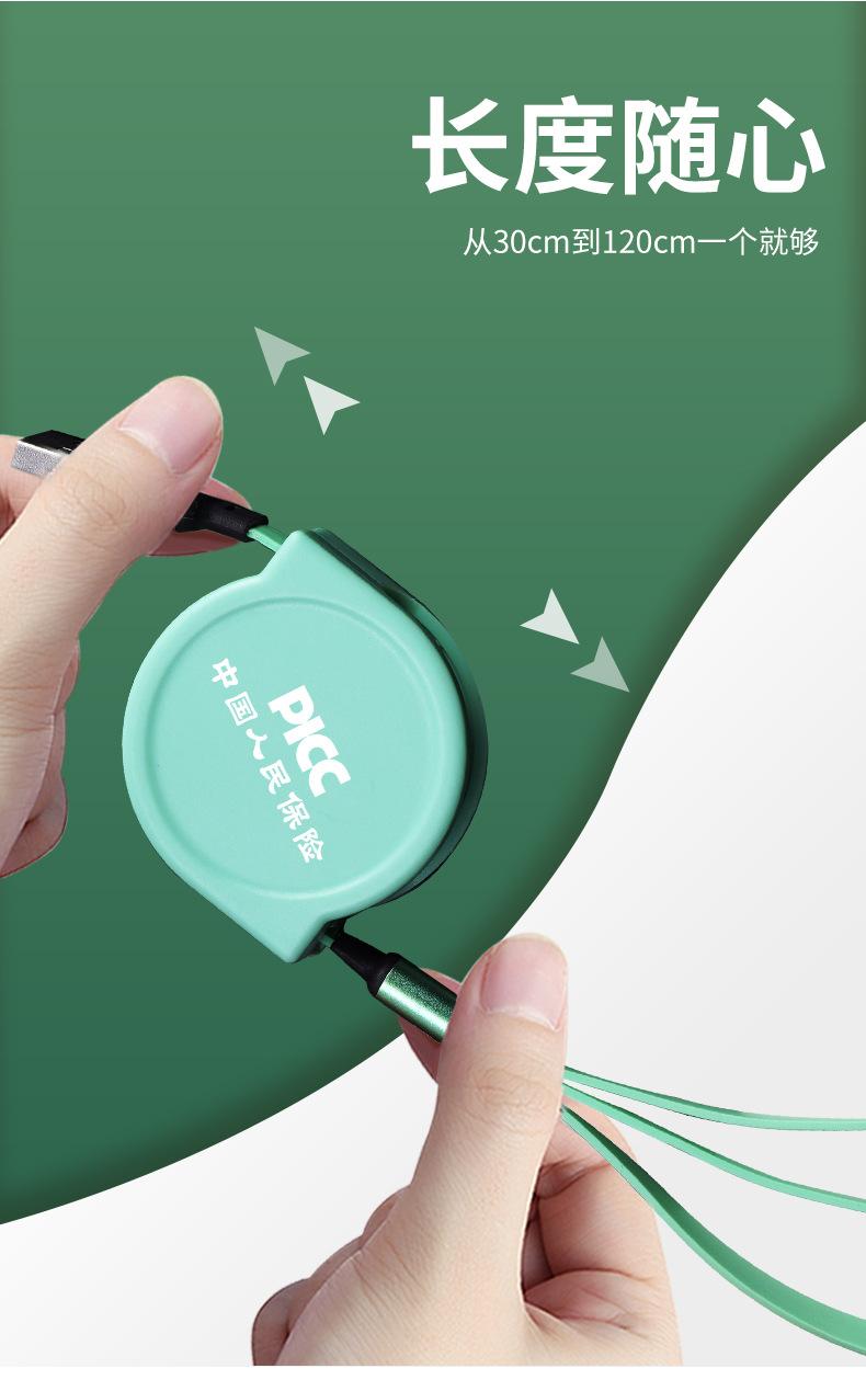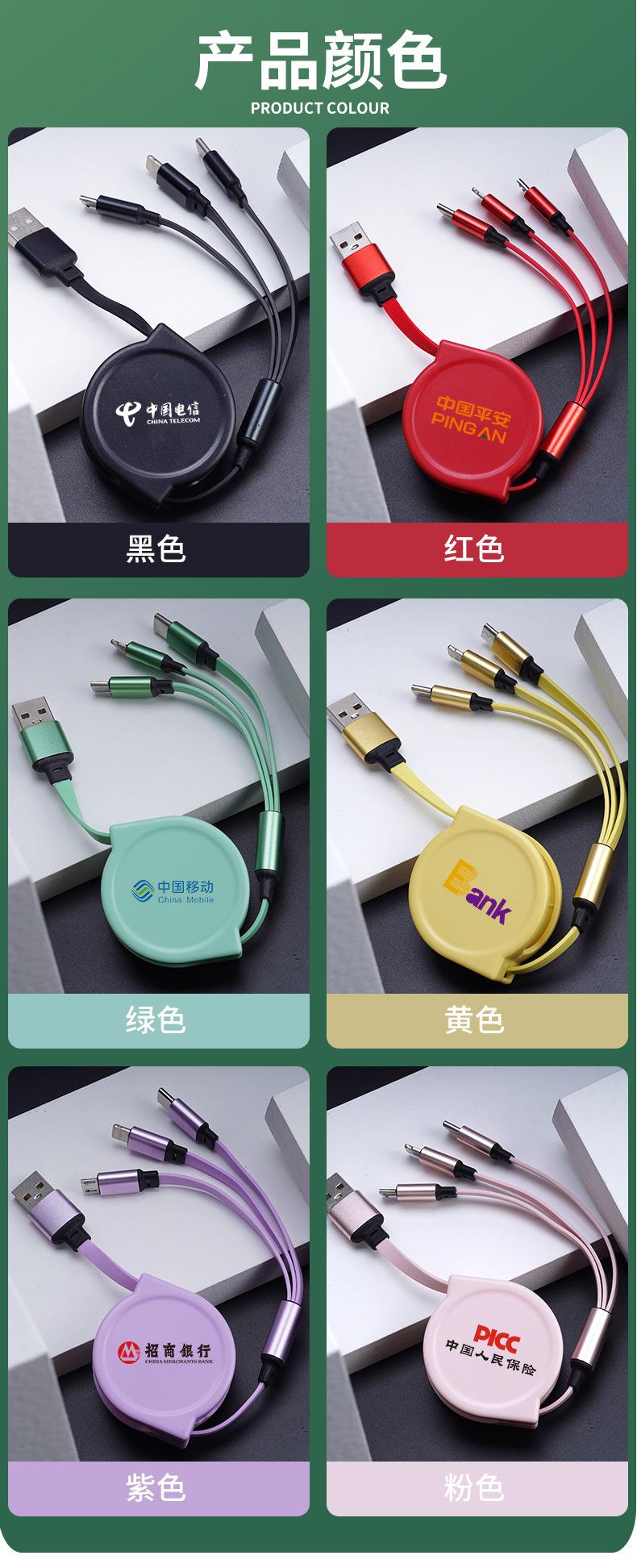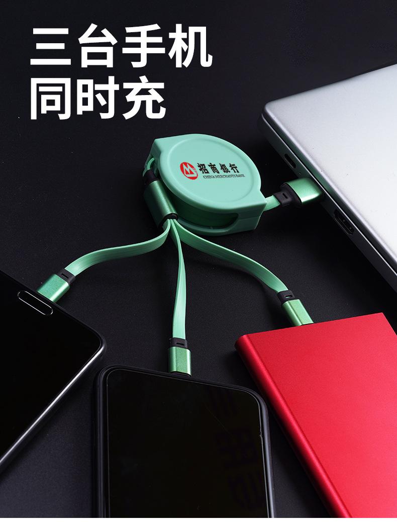 Cable de datos tres en uno carga rápida empresa unidad empresarial empleado regalo práctico logotipo personalizado línea de carga telescópica