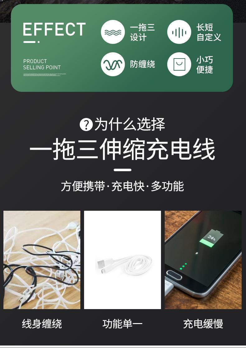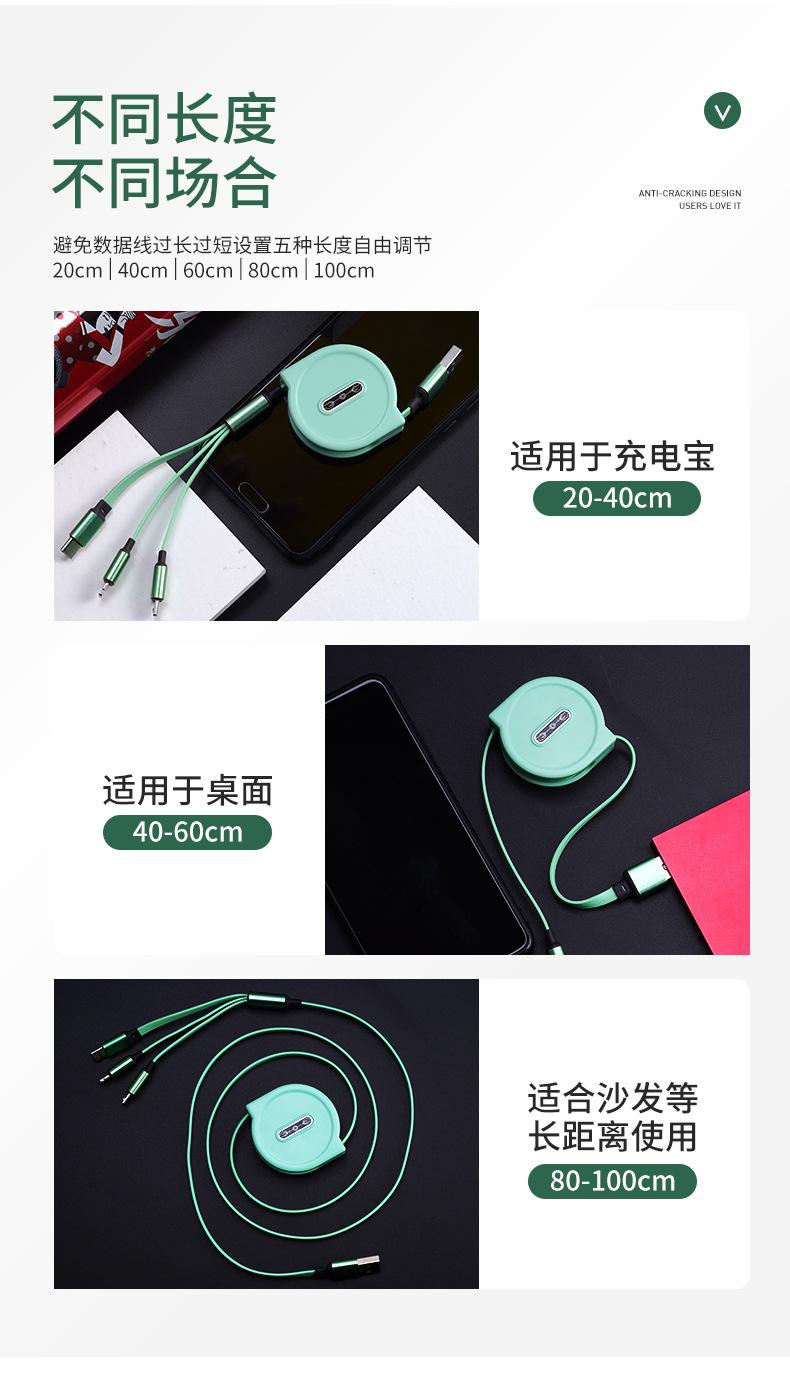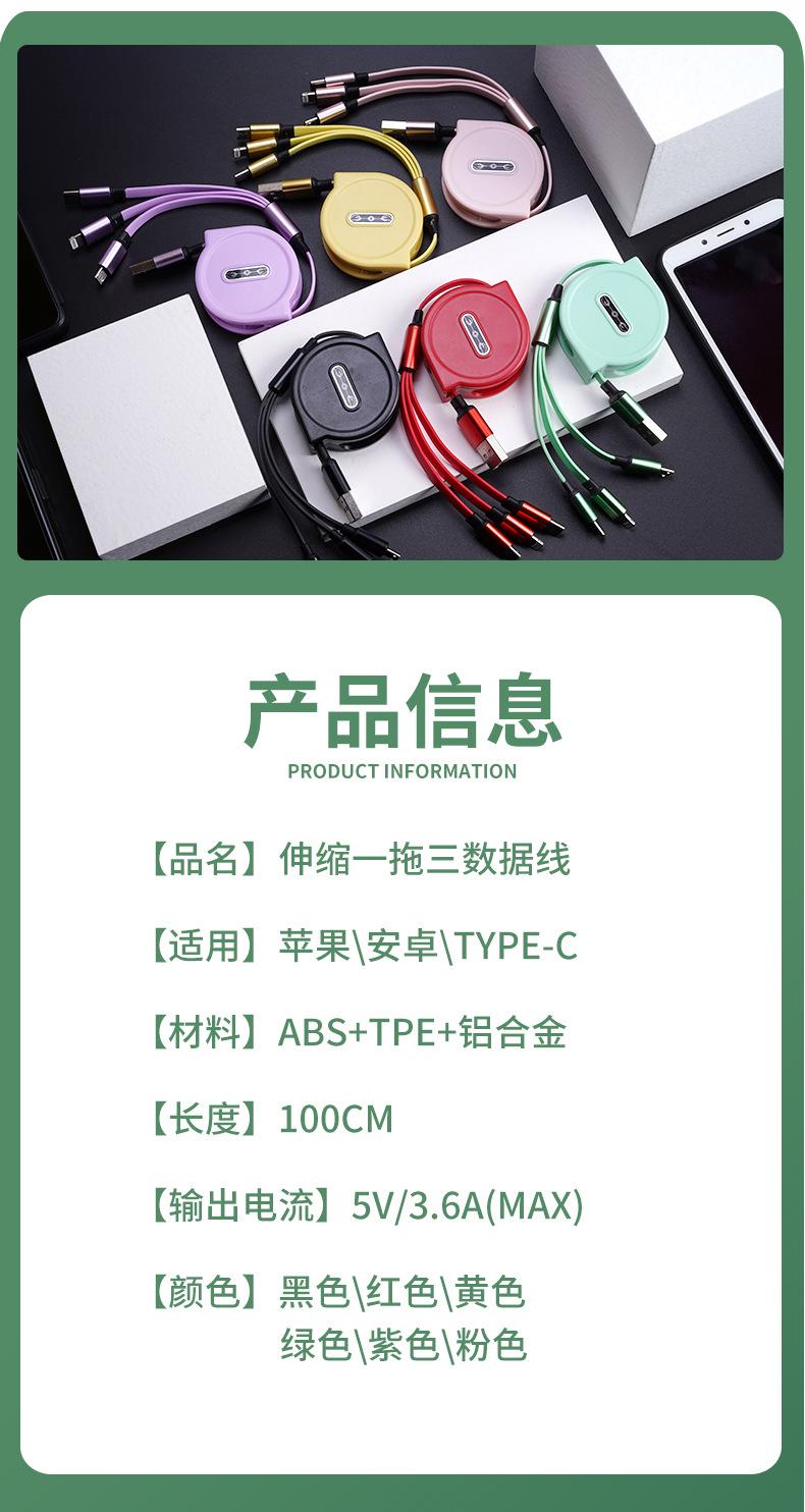 Cable de datos tres en uno carga rápida empresa unidad empresarial empleado regalo práctico logotipo personalizado línea de carga telescópica