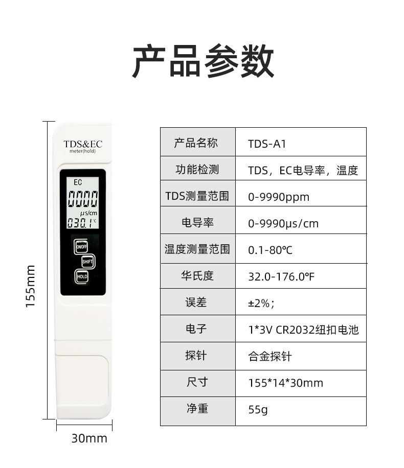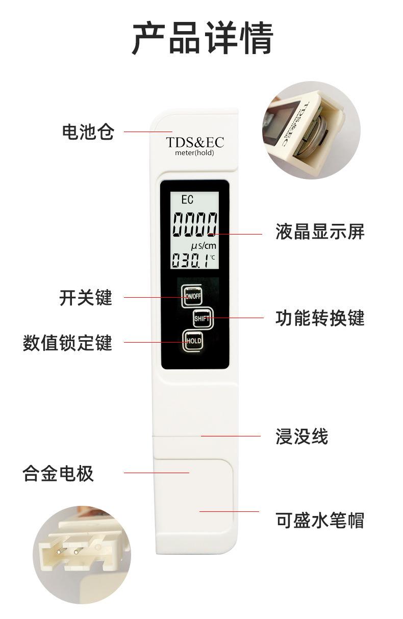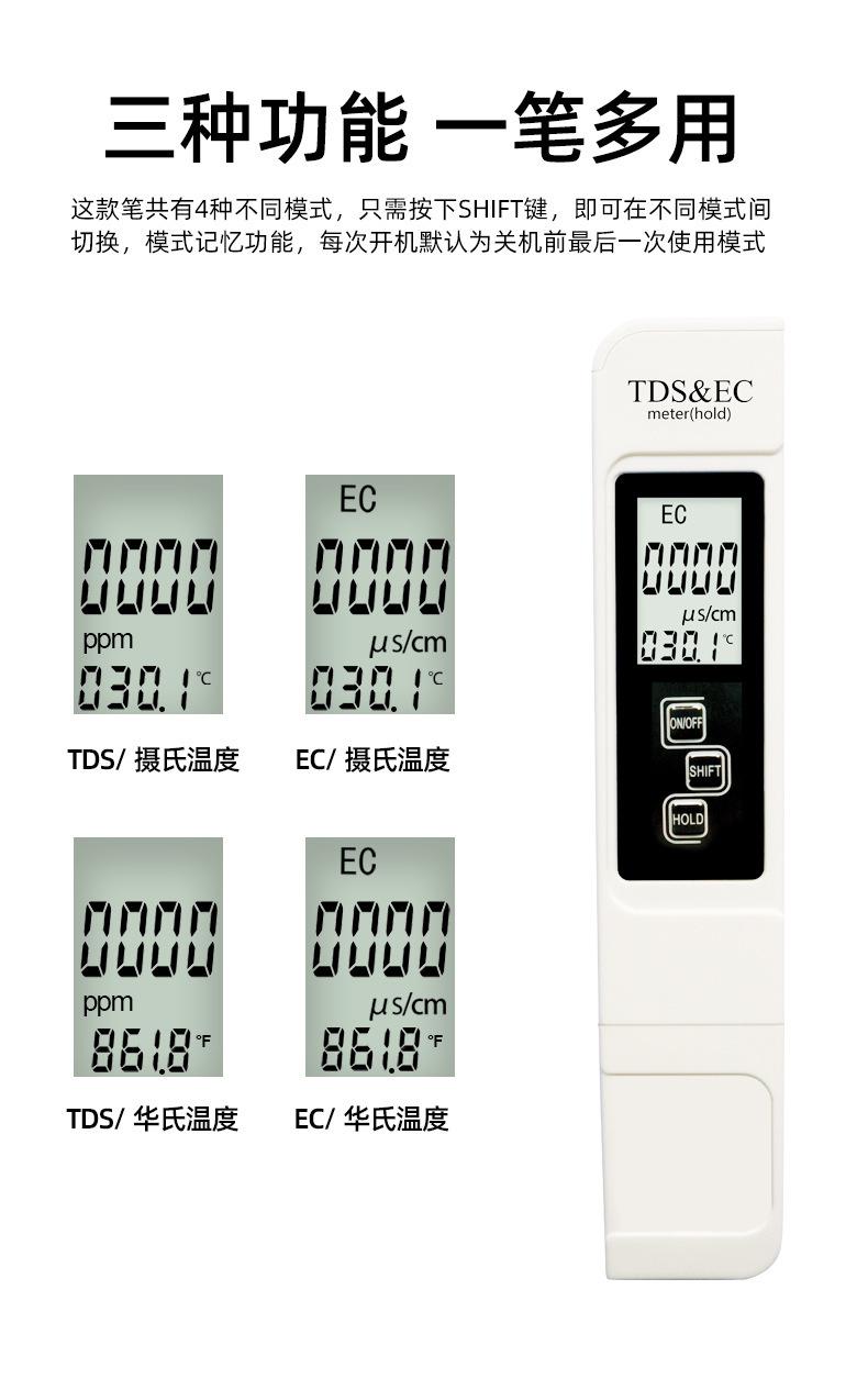 Pluma Tds Tres en Uno Pluma para Prueba de Calidad del Agua Medidor de CE Conductividad Pluma de Prueba Tds Detector de Calidad del Agua Pluma para Prueba de Temperatura