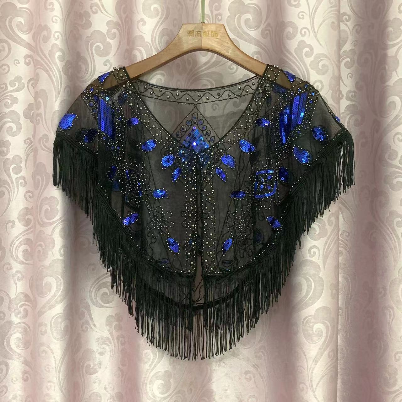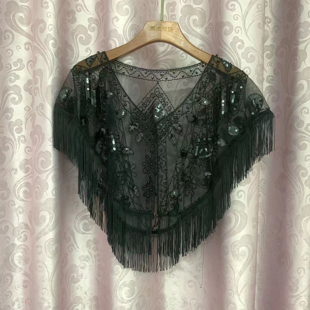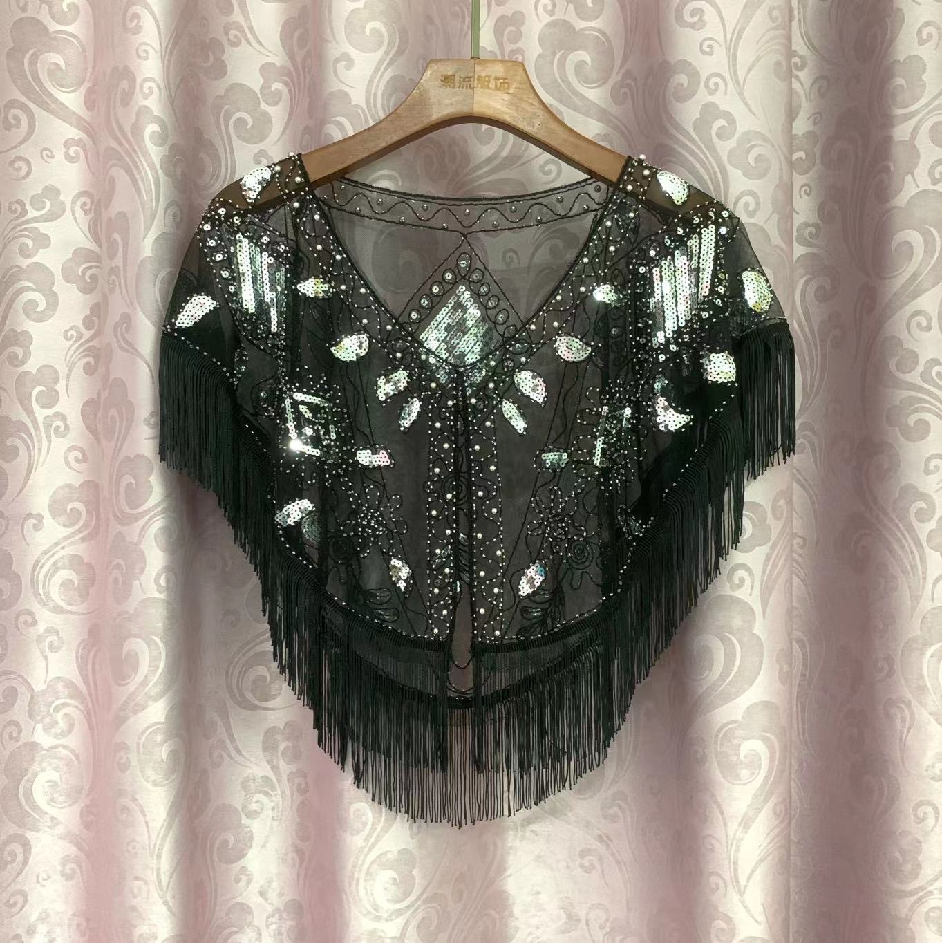 Chal de Noche con Cuentas Vestido de Lentejuelas Qipao Chal Vintage Top Corto Lentejuelas Ligeras Chal Pequeño Cárdigan Pequeño con Cuentas Pesadas para Mujer