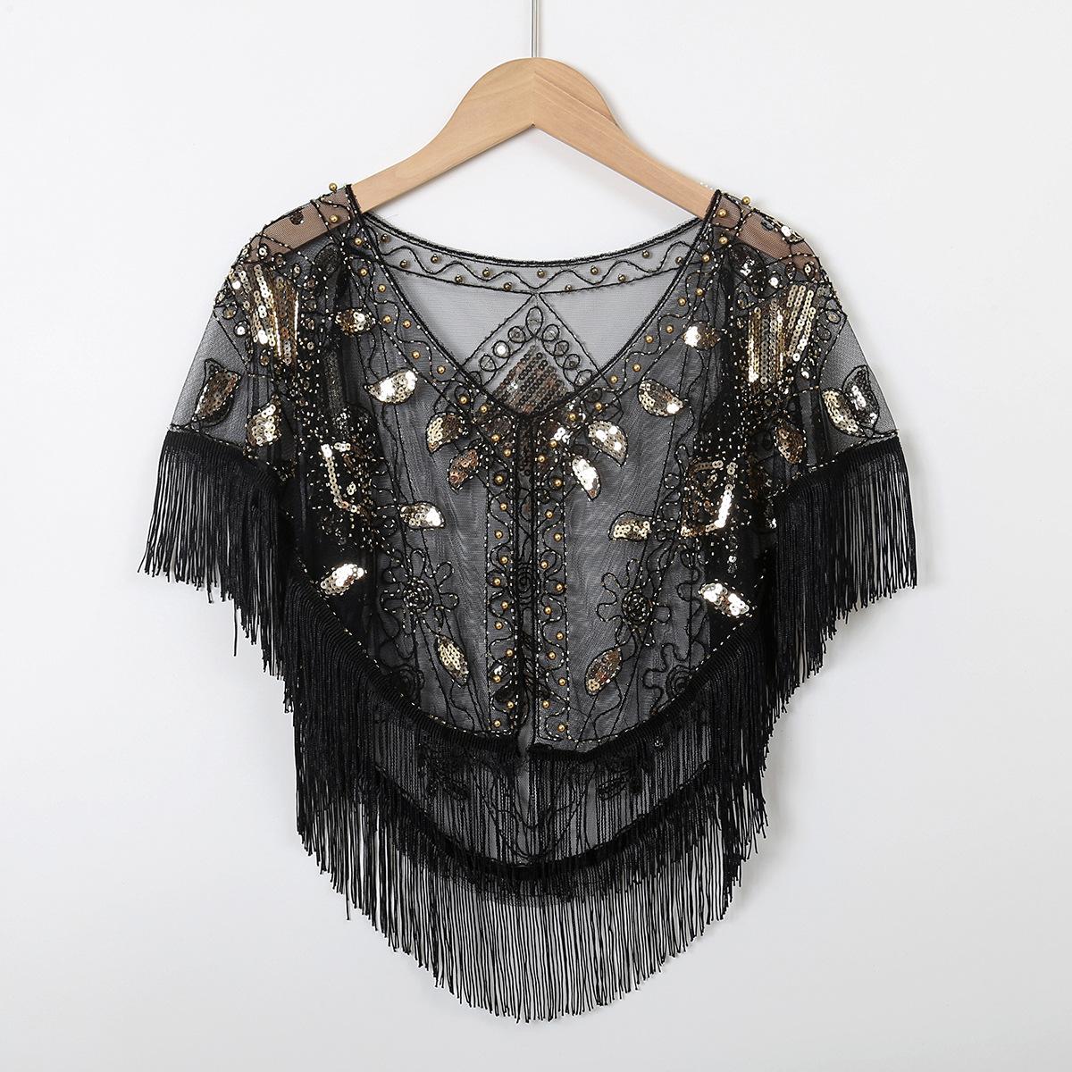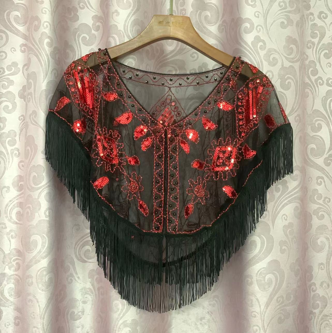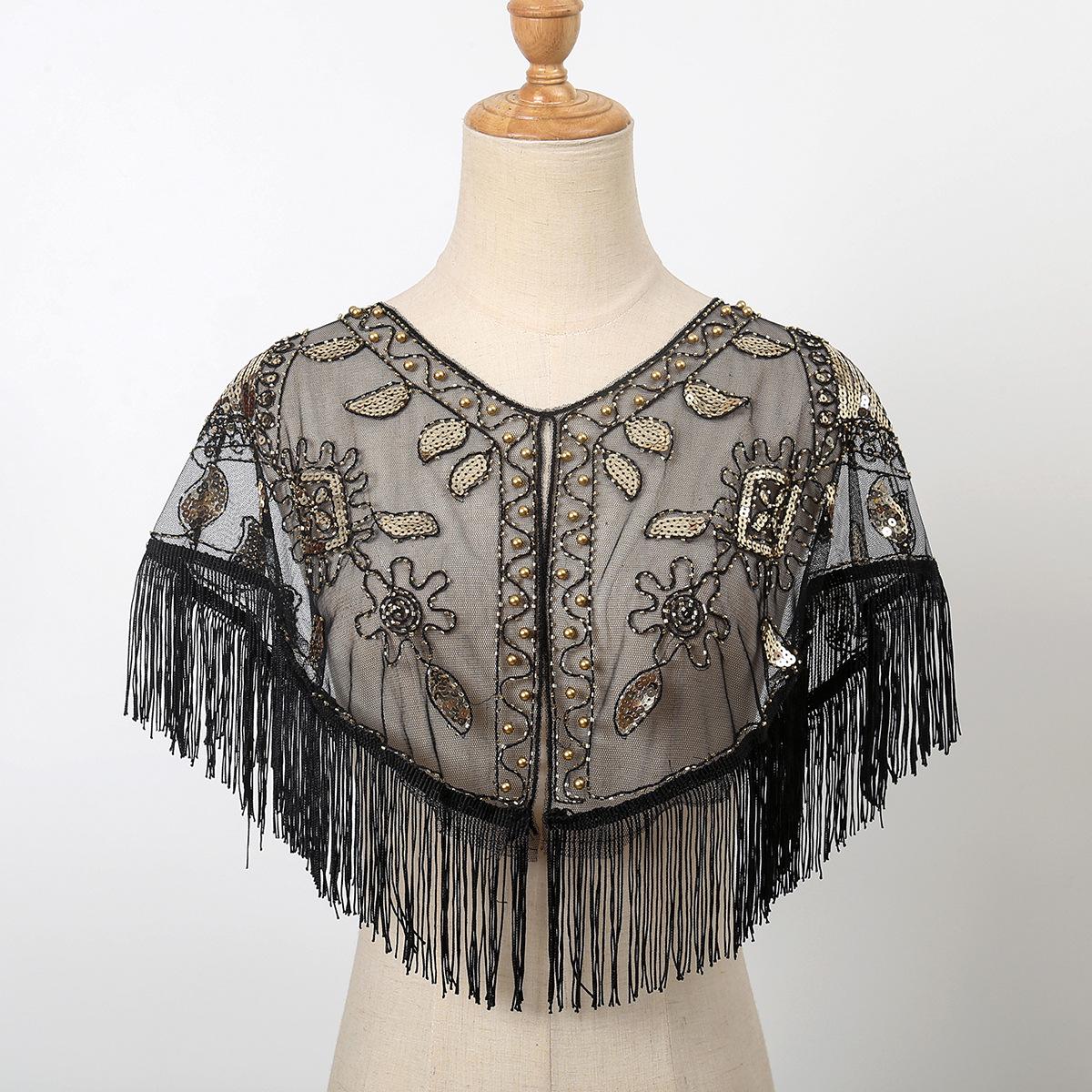 Chal de Noche con Cuentas Vestido de Lentejuelas Qipao Chal Vintage Top Corto Lentejuelas Ligeras Chal Pequeño Cárdigan Pequeño con Cuentas Pesadas para Mujer