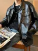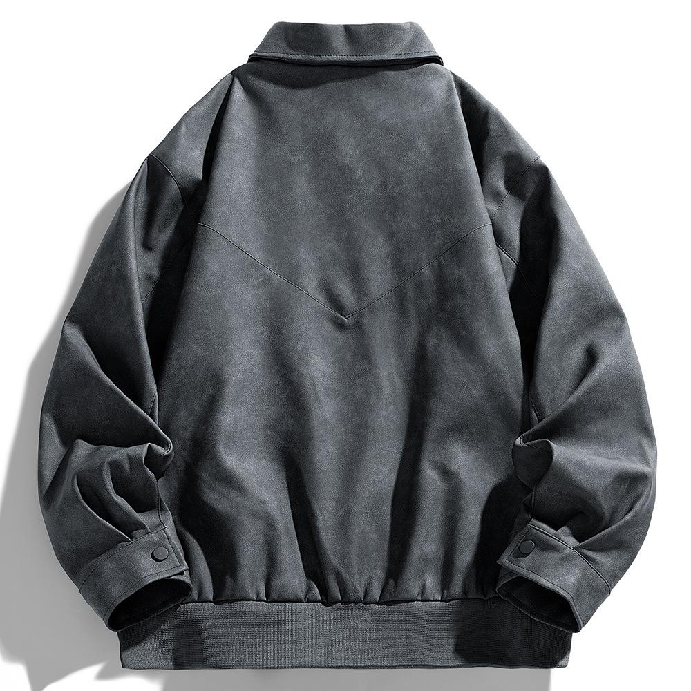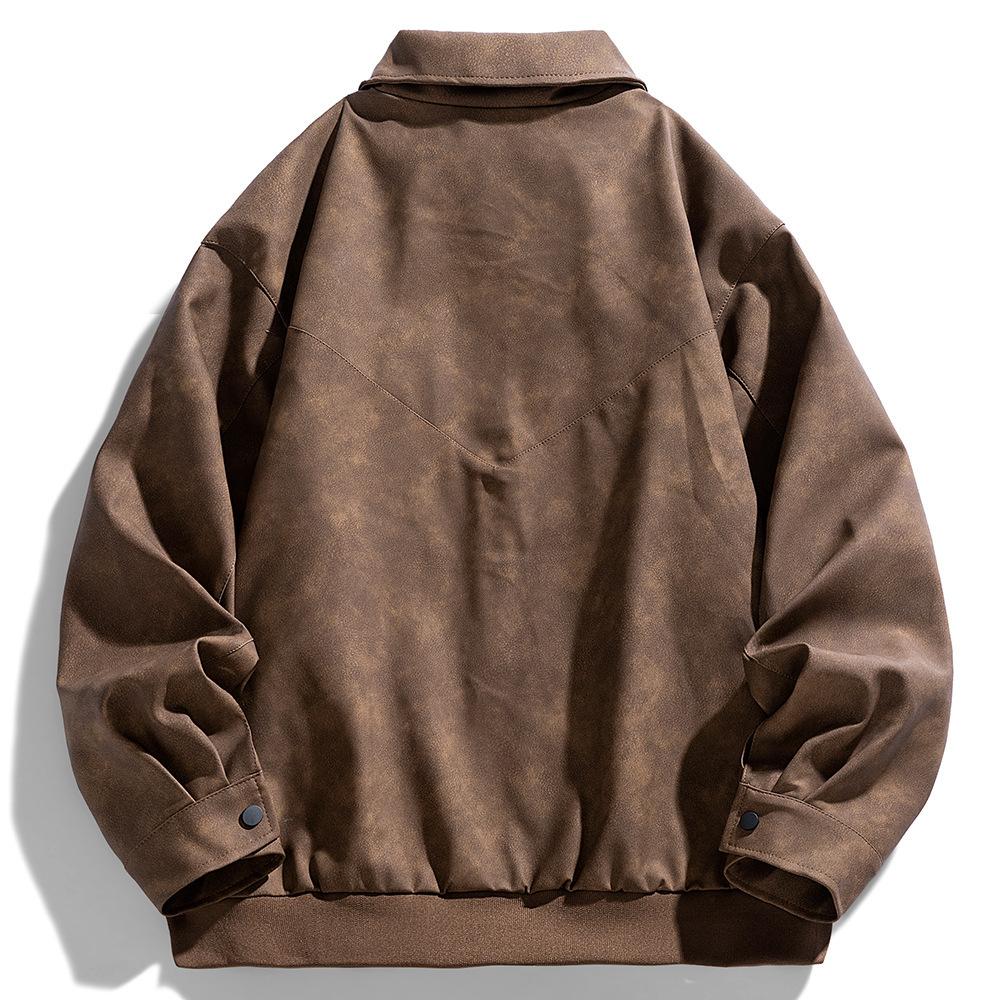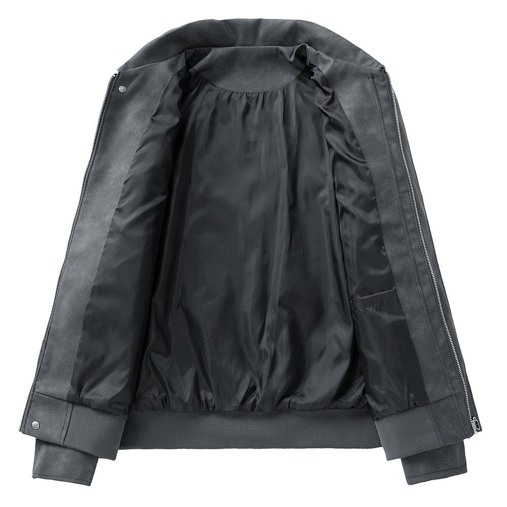 Chaqueta de Cuero para Hombre con Cuello Mao Chaqueta de Cuero PU con Cremallera de Marca Versátil y Moderna Retro Americana para Primavera y Otoño
