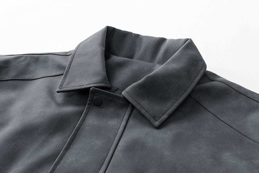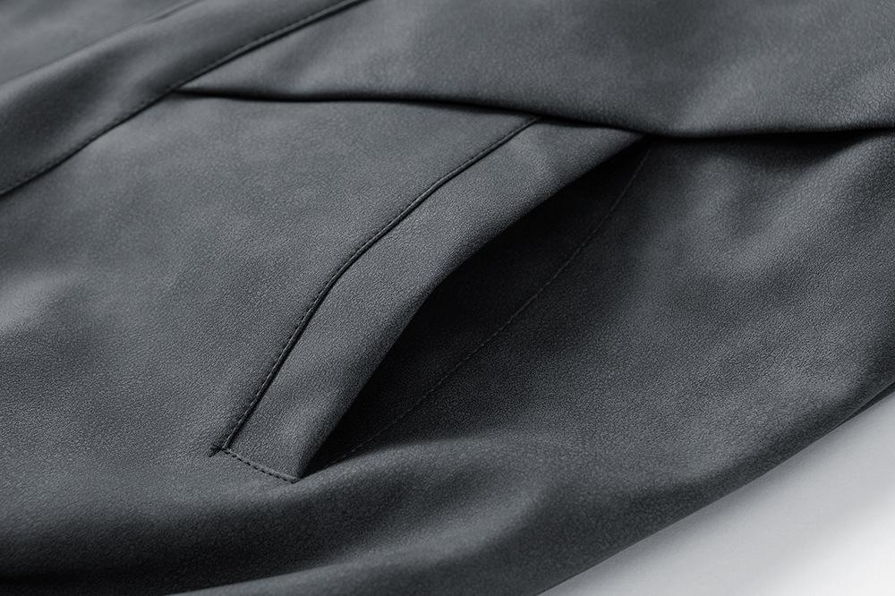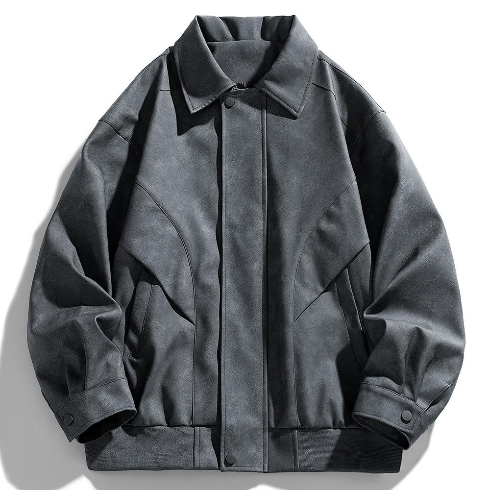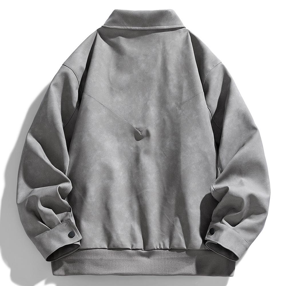 Chaqueta de Cuero para Hombre con Cuello Mao Chaqueta de Cuero PU con Cremallera de Marca Versátil y Moderna Retro Americana para Primavera y Otoño
