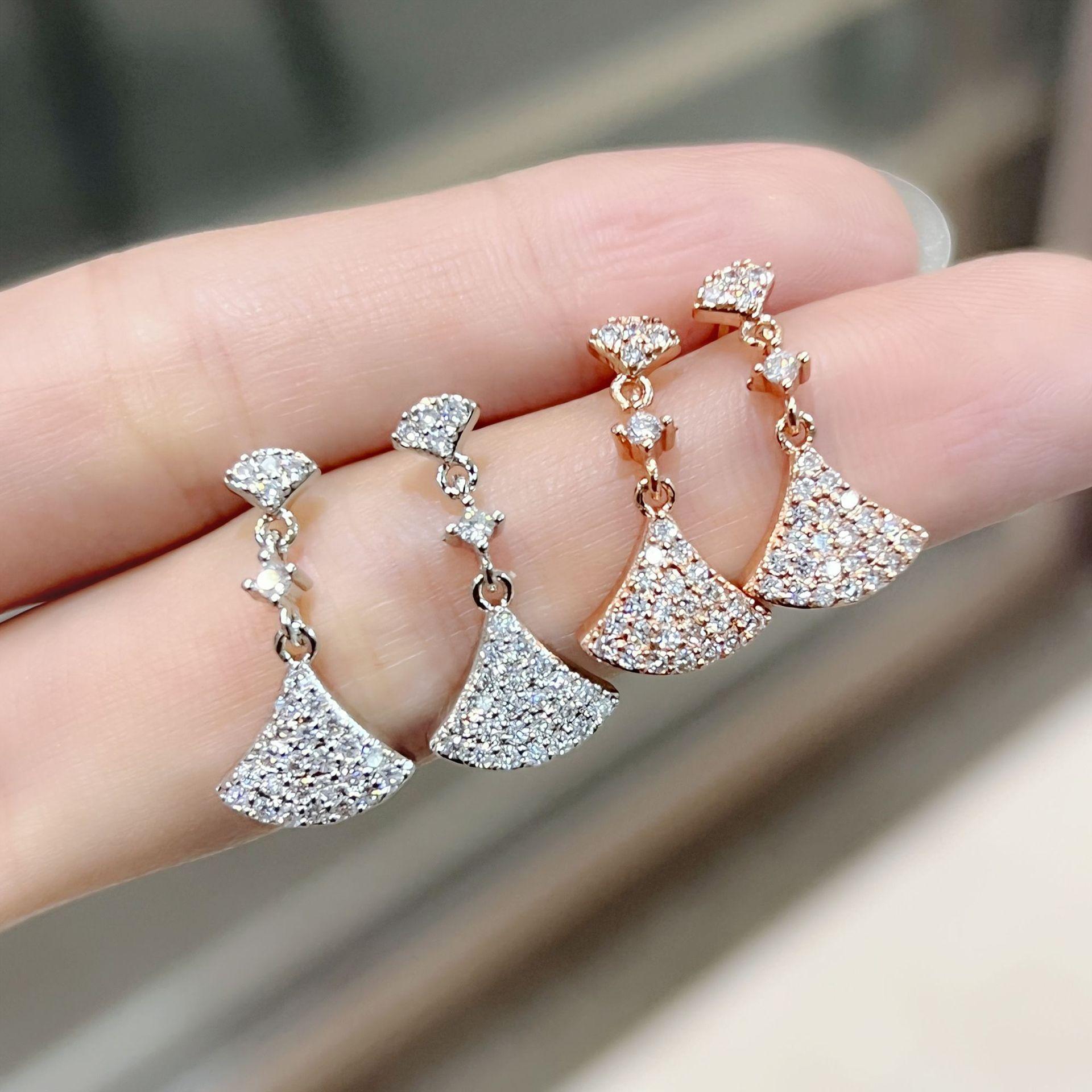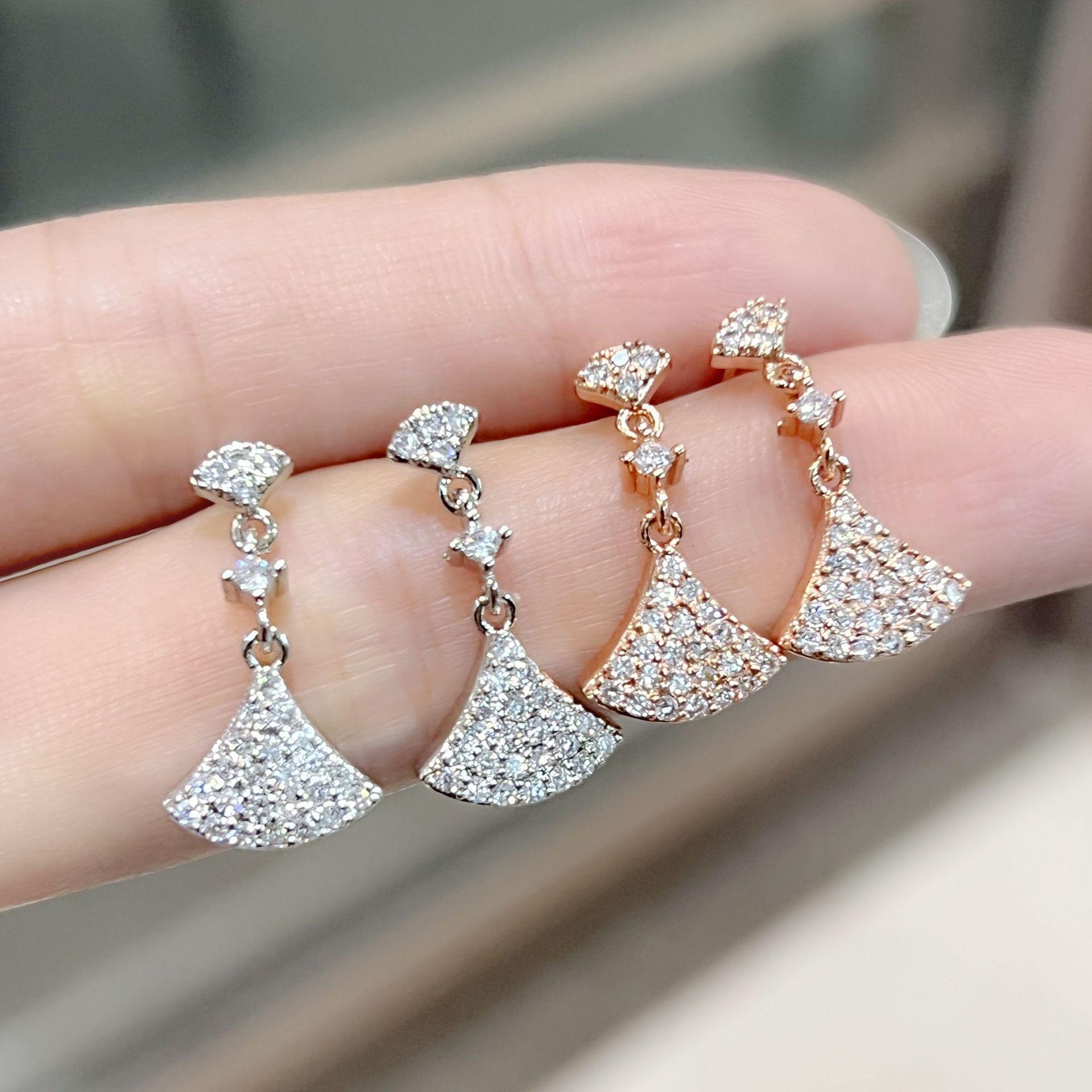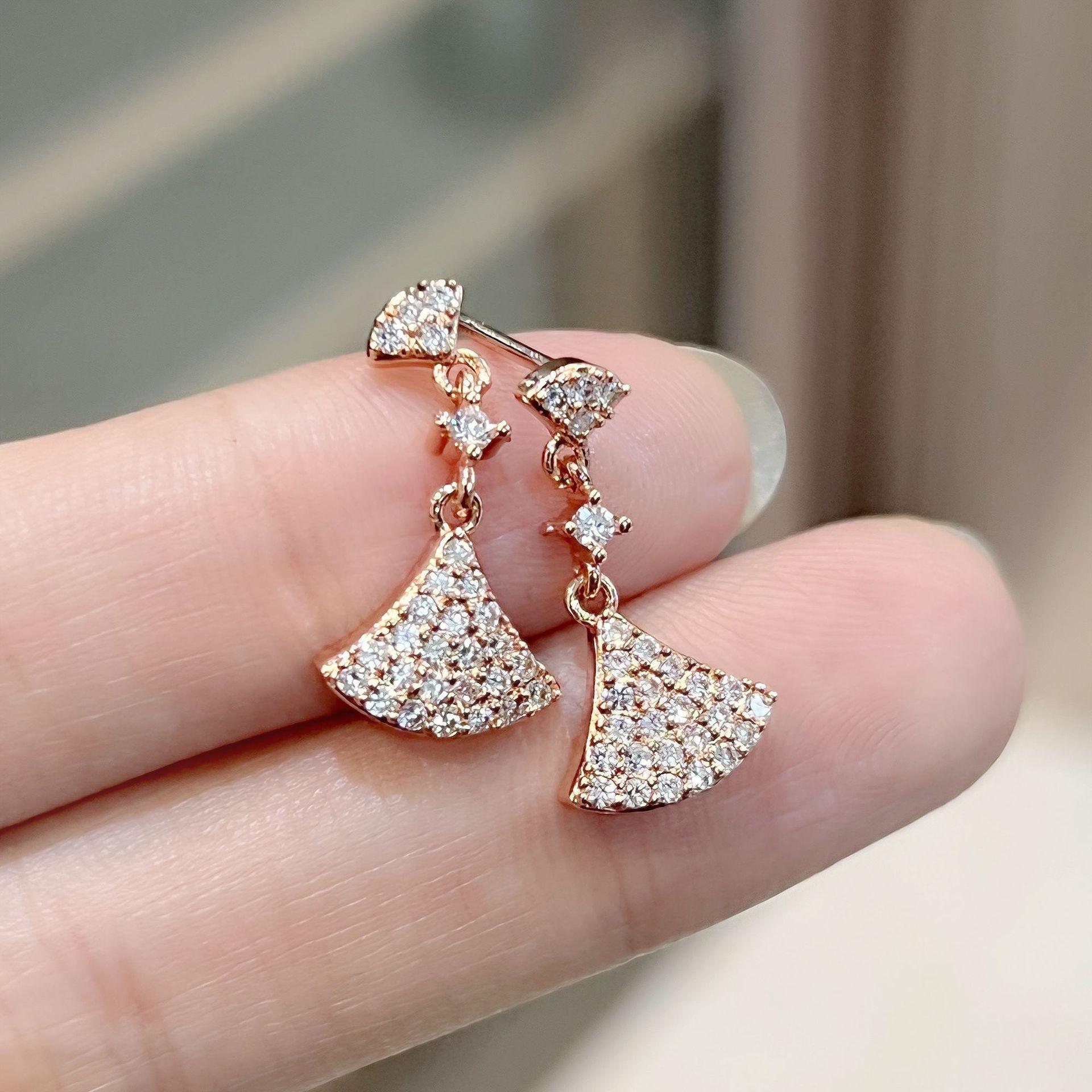 Pendientes de falda pequeña con diamantes de imitación estilo celebridad de Internet, diseño de pendientes en forma de abanico, nueva moda 2023