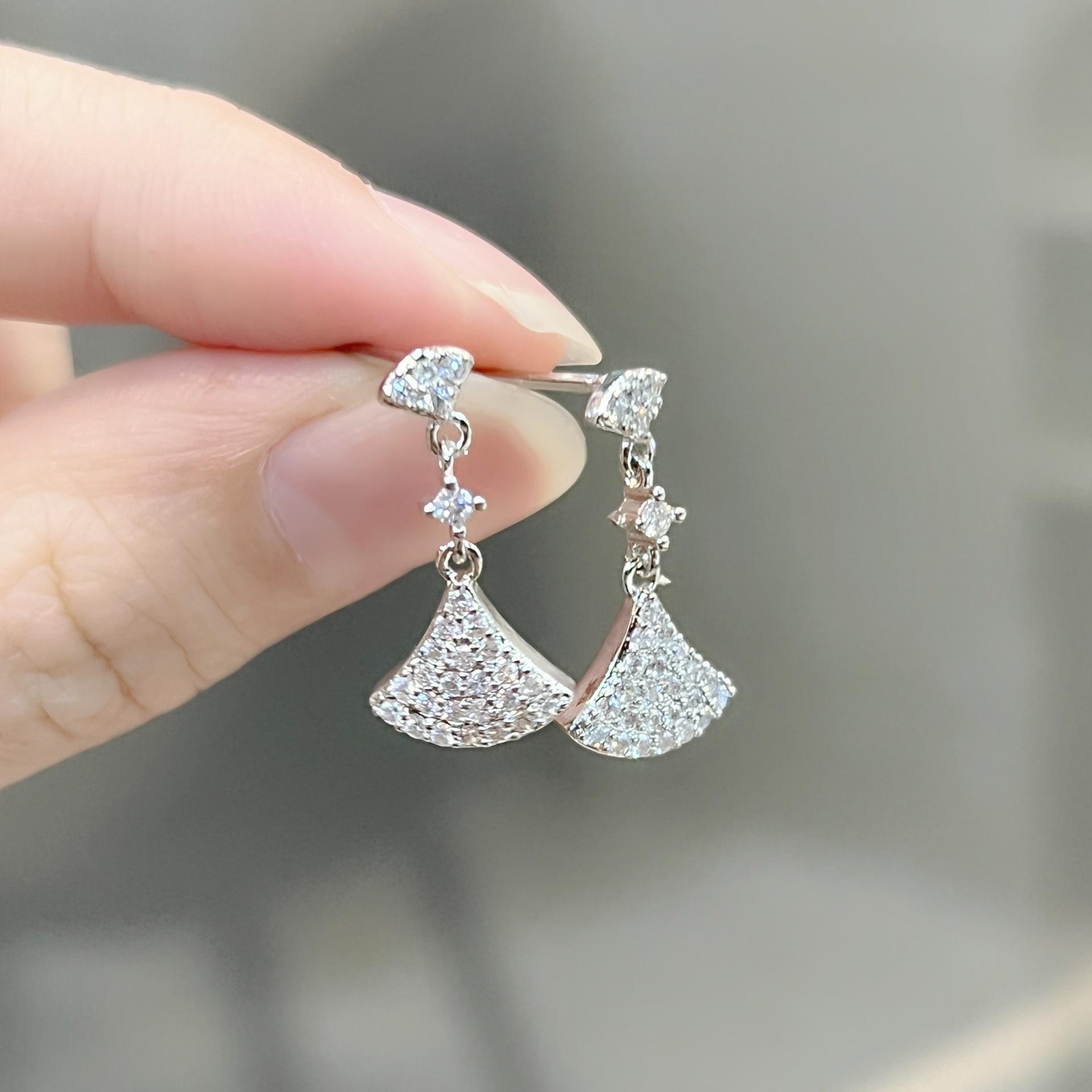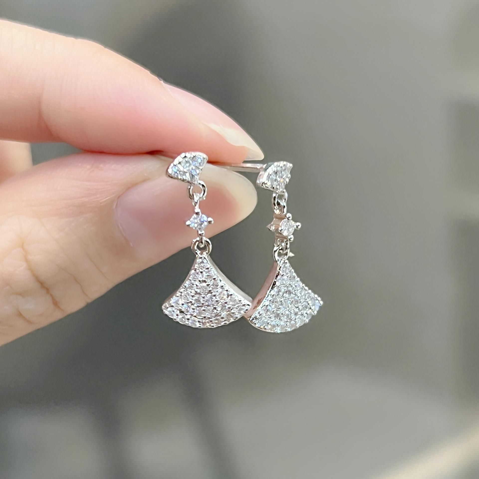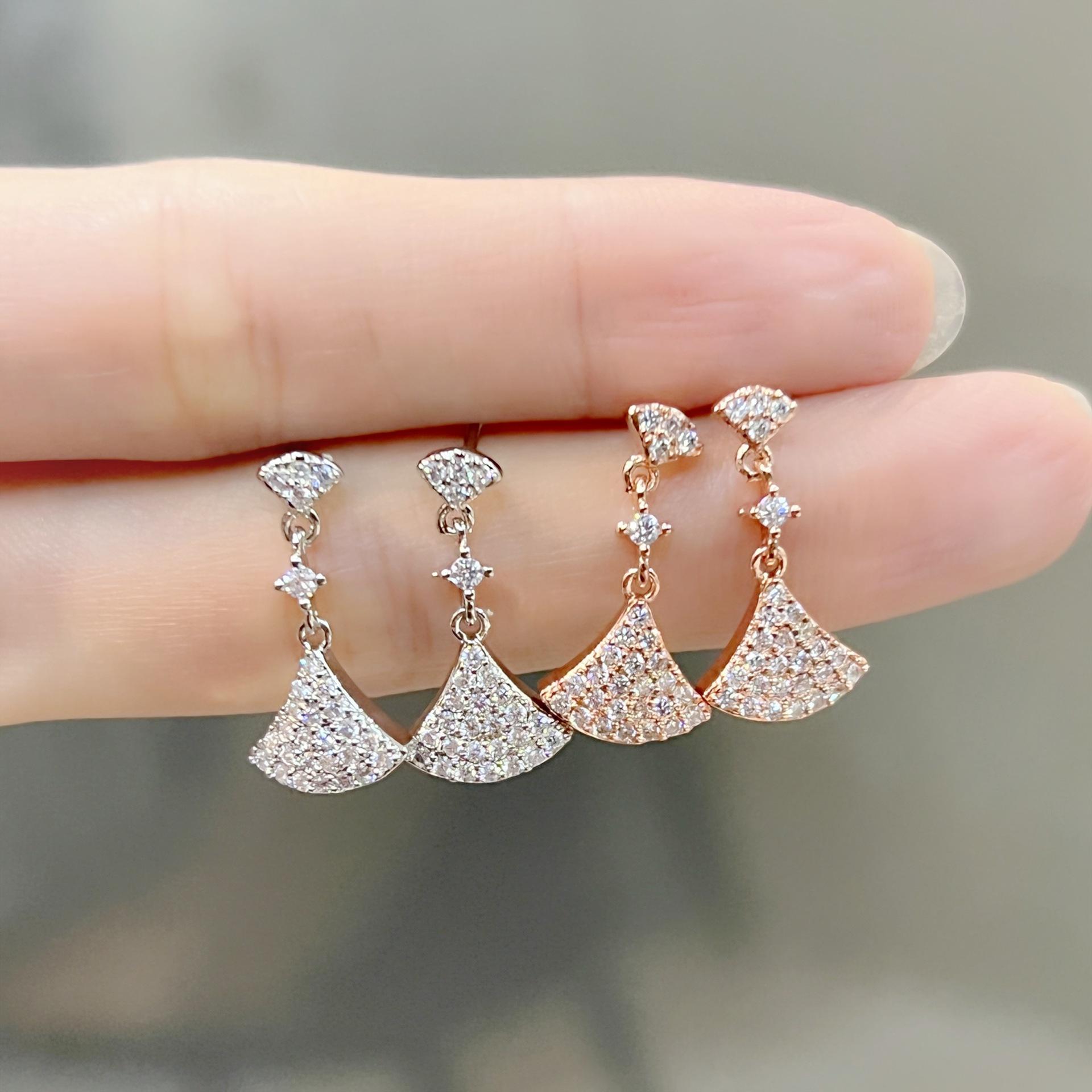 Pendientes de falda pequeña con diamantes de imitación estilo celebridad de Internet, diseño de pendientes en forma de abanico, nueva moda 2023