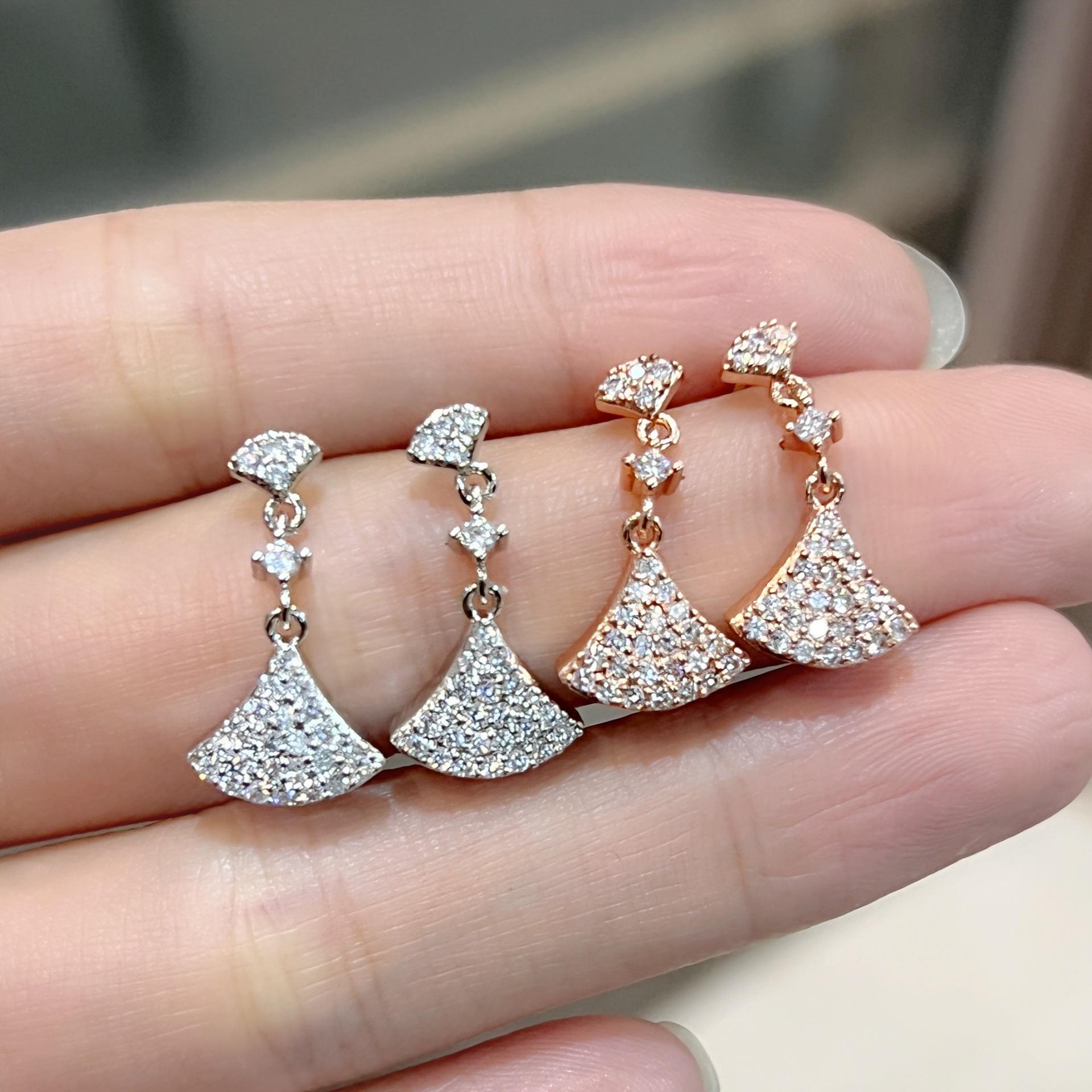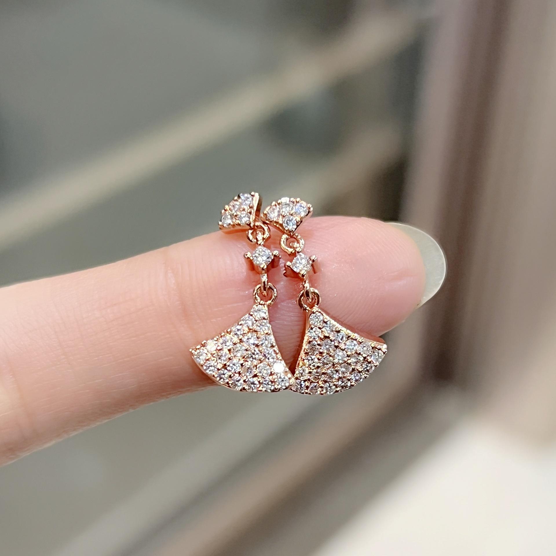 Compra Pendientes de falda pequeña con diamantes de imitación estilo celebridad de Internet, diseño de pendientes en forma de abanico, nueva moda 2023 al por mayor en Joom.pro