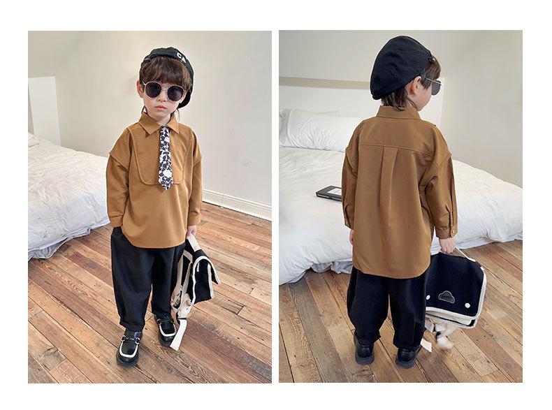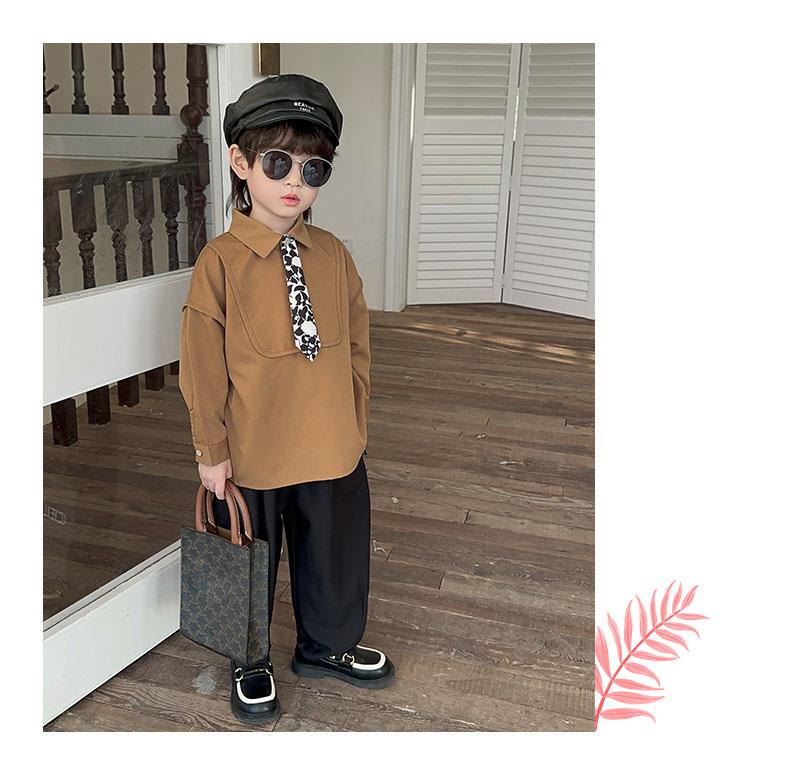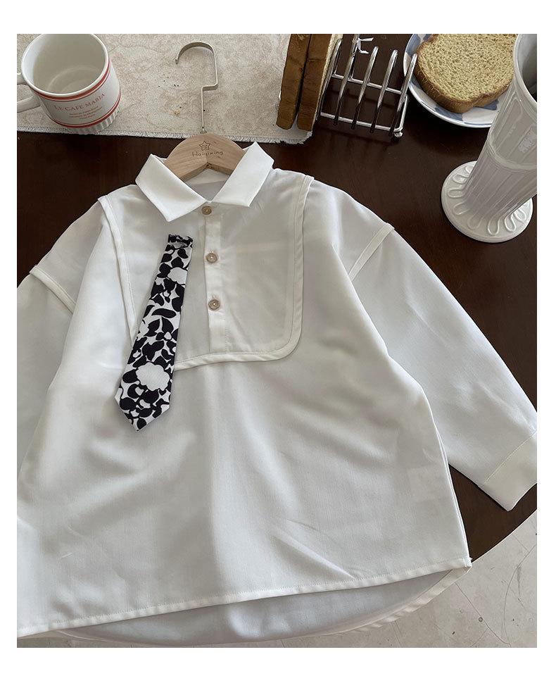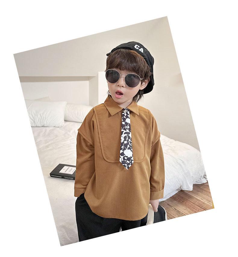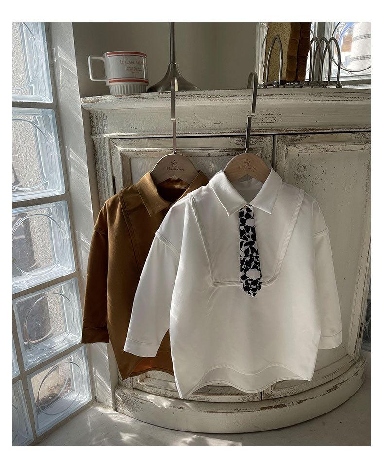 Camisa Chaqueta para Niño Primavera 2025 Nueva Bebé Corbata Camisa Estilo Coreano Estilo Occidental Manga Larga Top para Niño Trendy