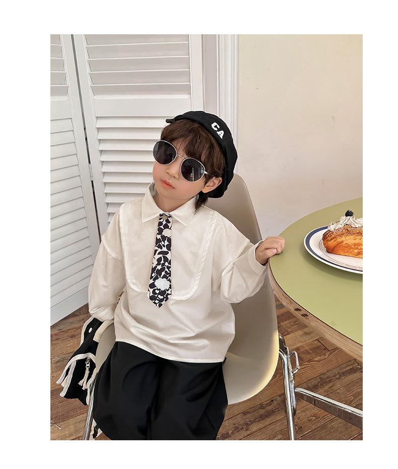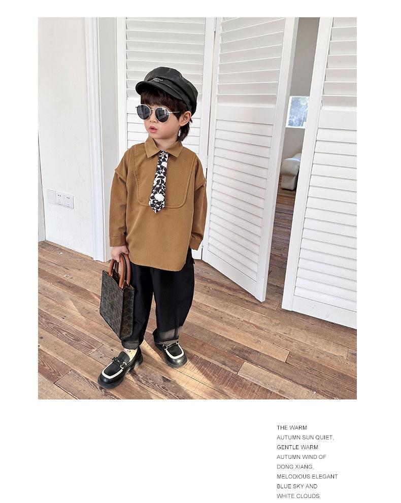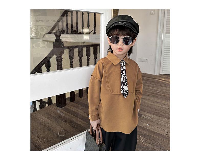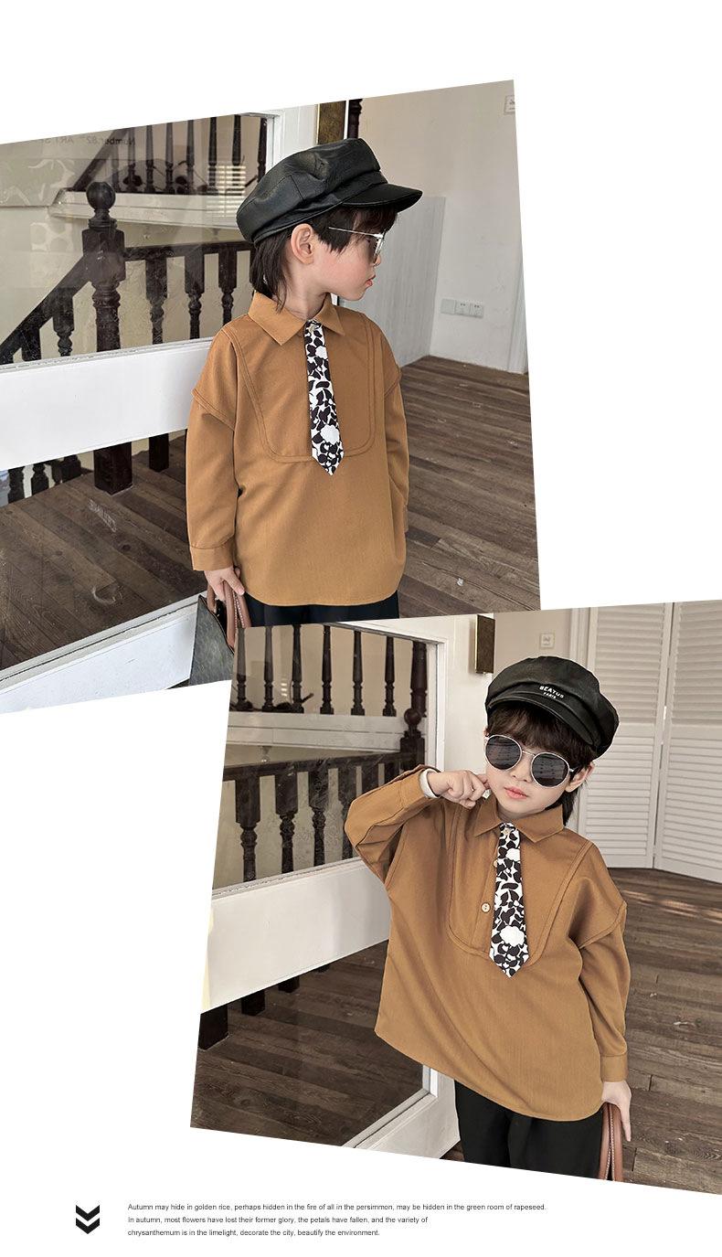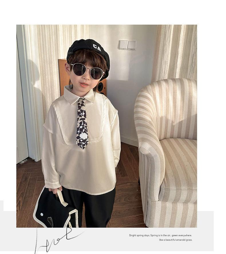 Camisa Chaqueta para Niño Primavera 2025 Nueva Bebé Corbata Camisa Estilo Coreano Estilo Occidental Manga Larga Top para Niño Trendy