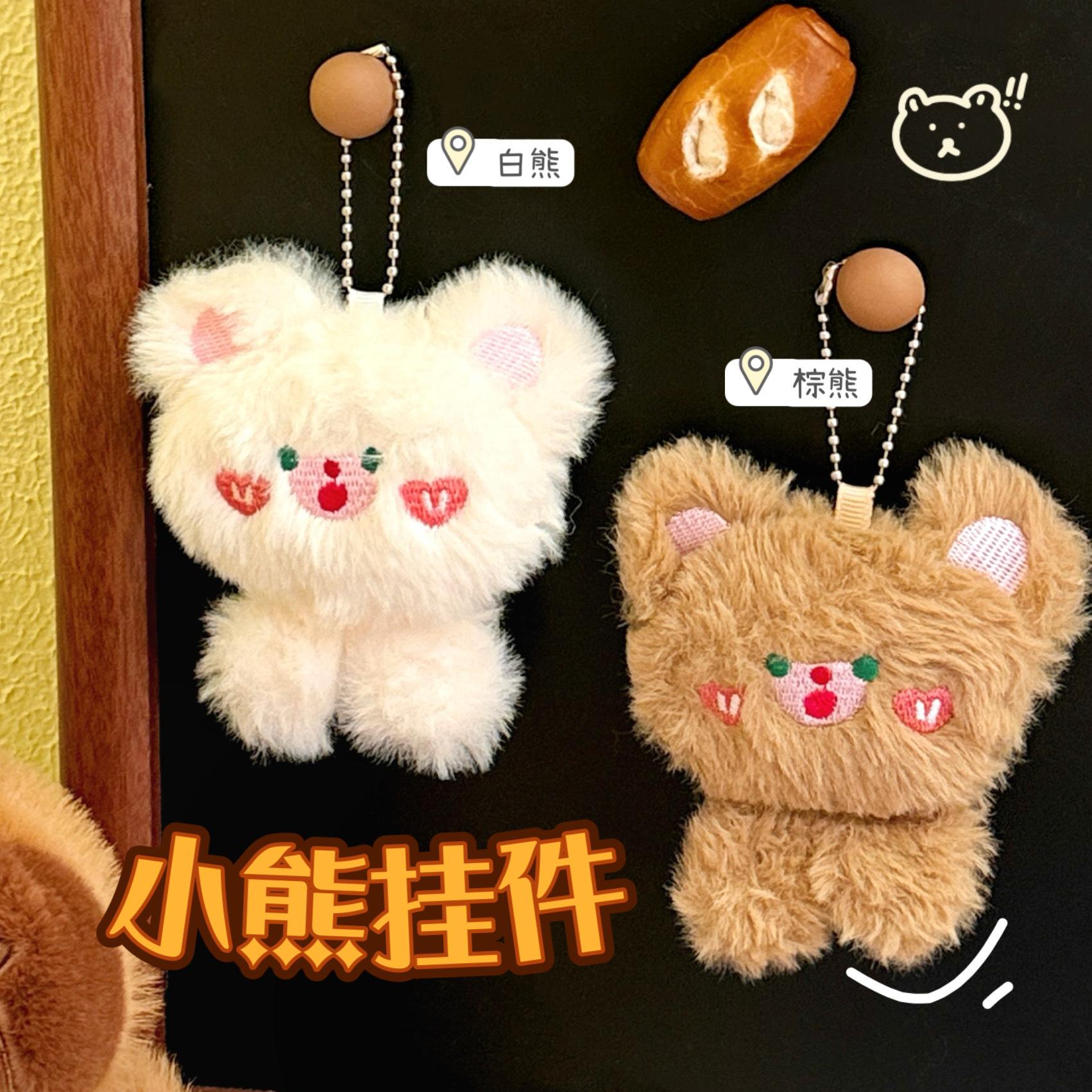 1#White bear doll pendant, 2#Brown bear doll pendant, White bear brooch, Coffee bear brooch