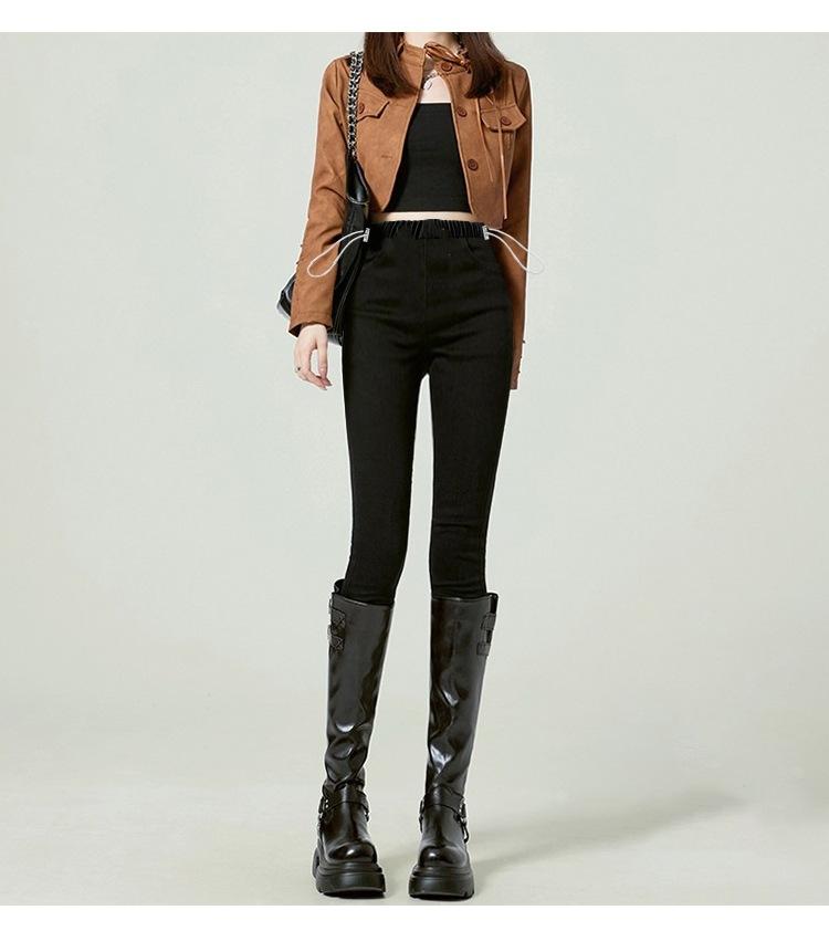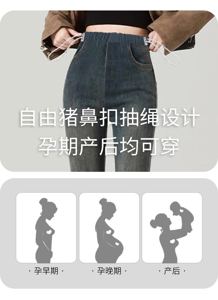 Pantalones de Maternidad 2025 Primavera y Otoño Nuevo Estilo Pantalones de Pierna Pequeña Jeans Cordón Lateral Tres Gruesos Casual Ajustados Pantalones de Maternidad