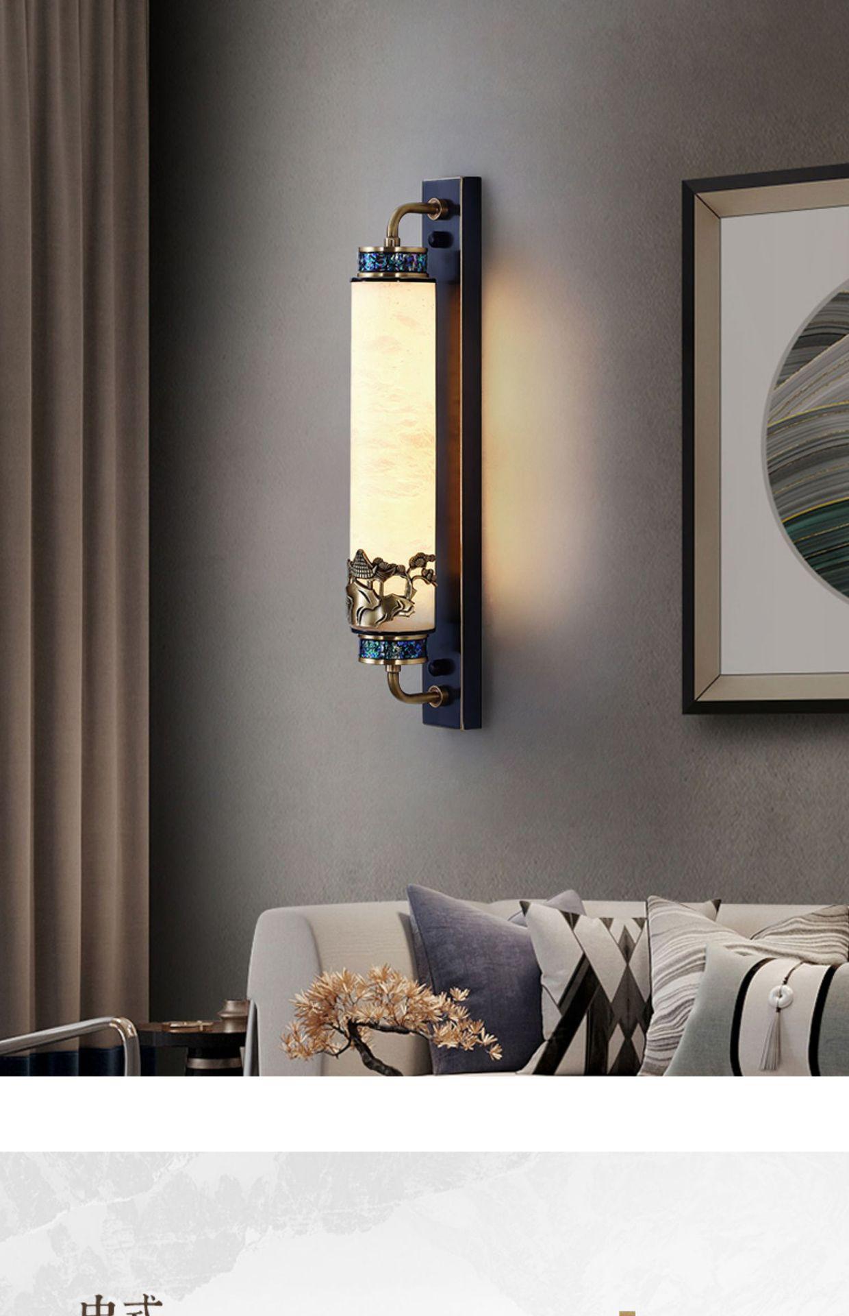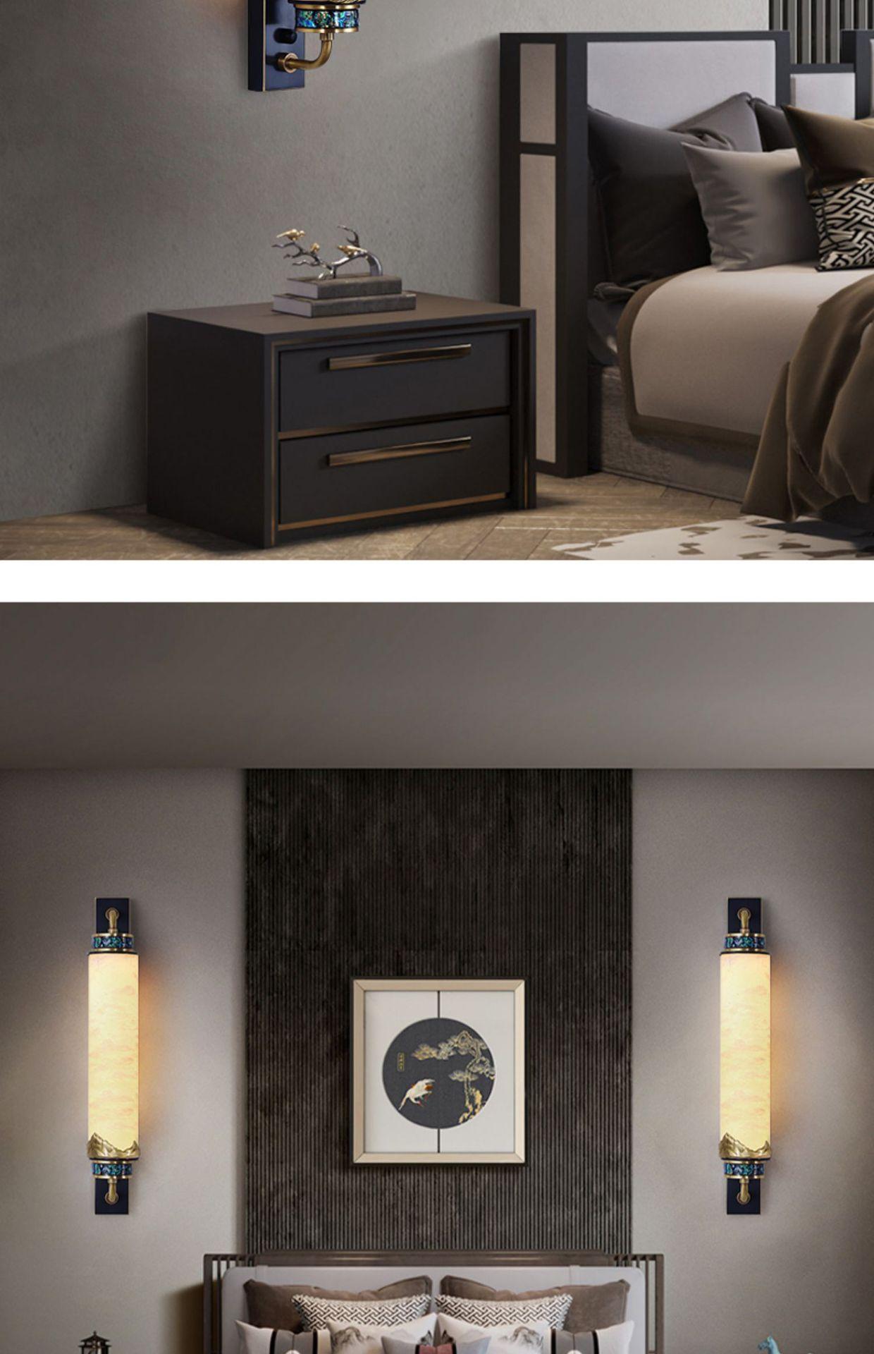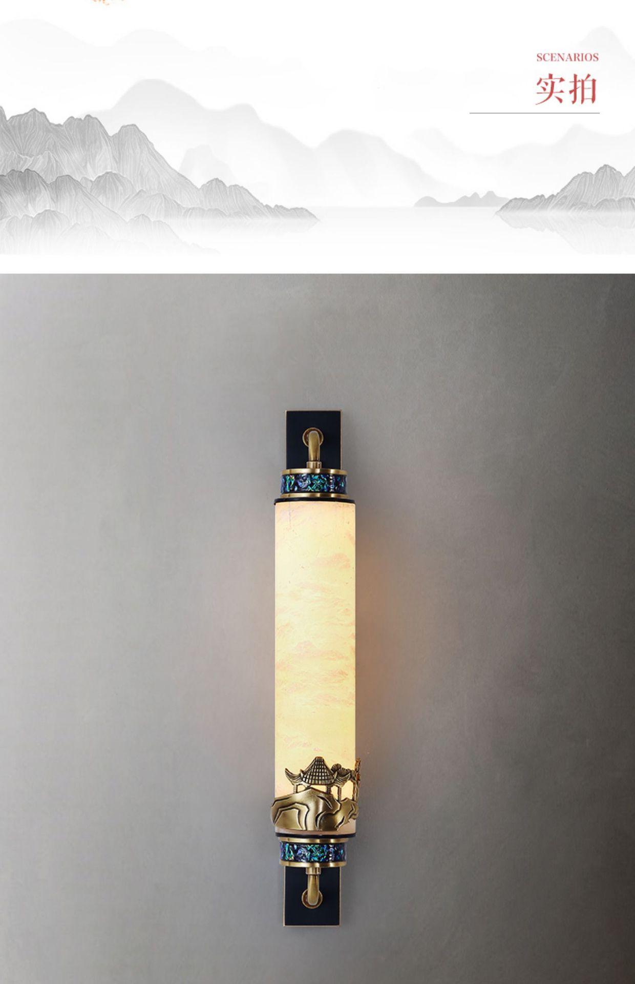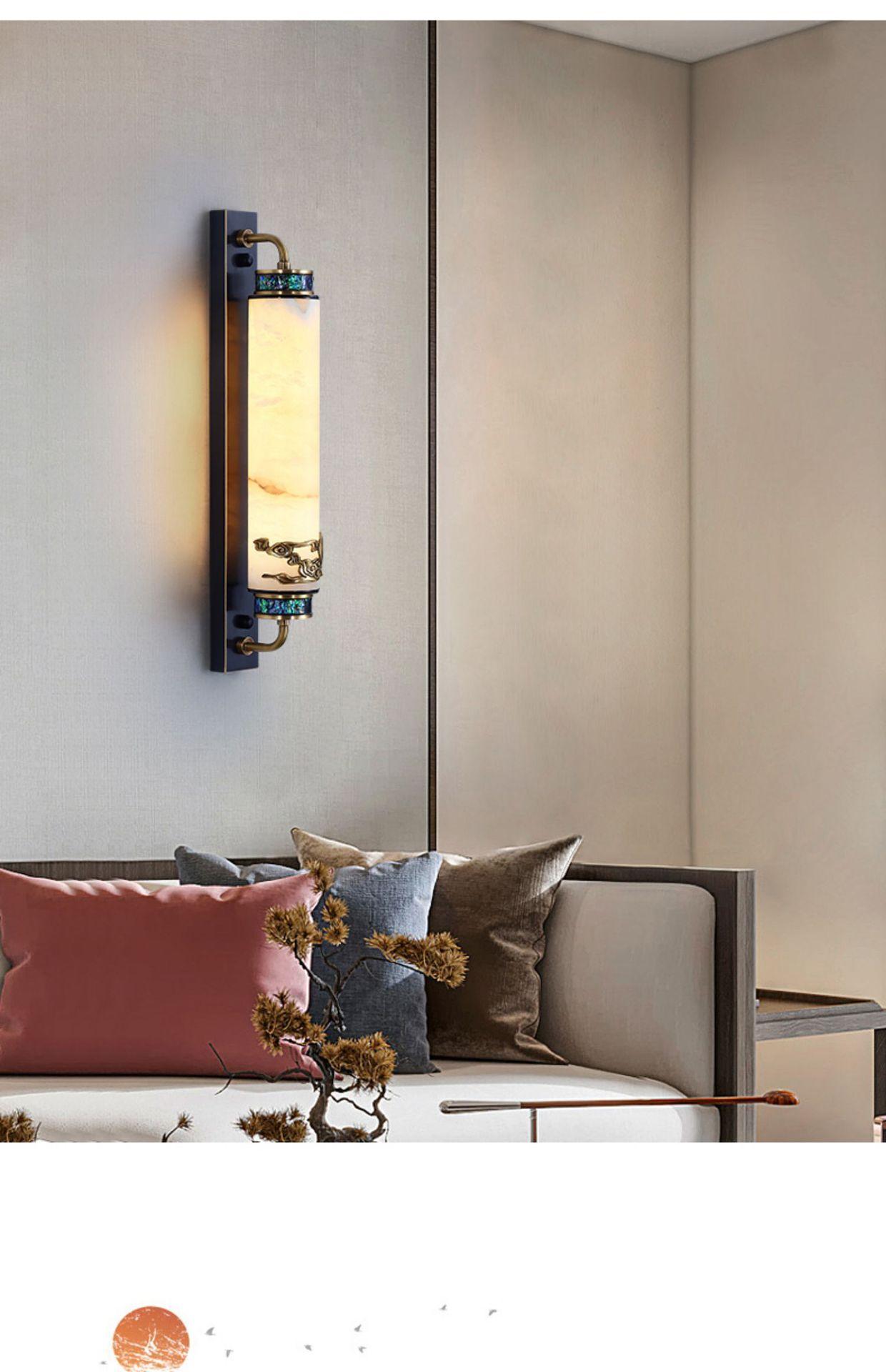 Nueva lámpara de pared de fondo de mármol de cobre puro estilo chino, sala de estar, pasillo de villa de alta gama, iluminación LED de ambiente, dormitorio, mesita de noche