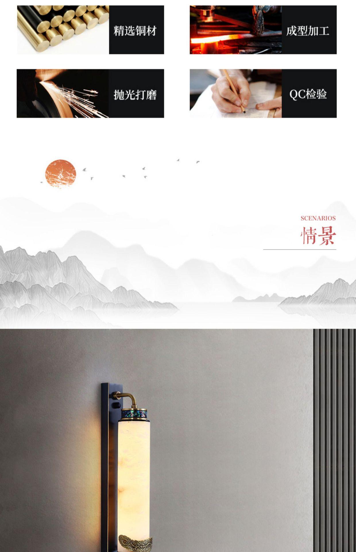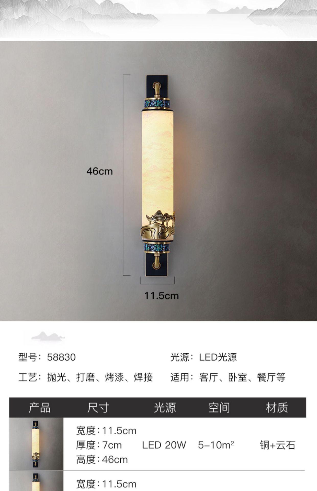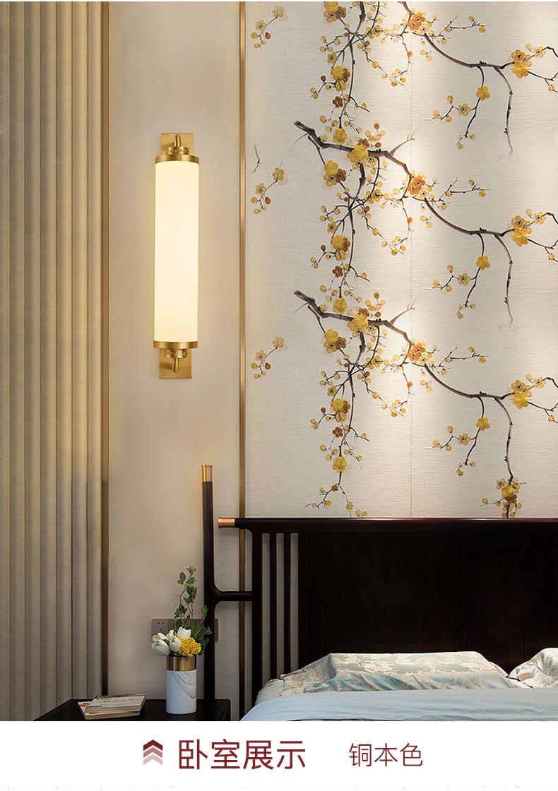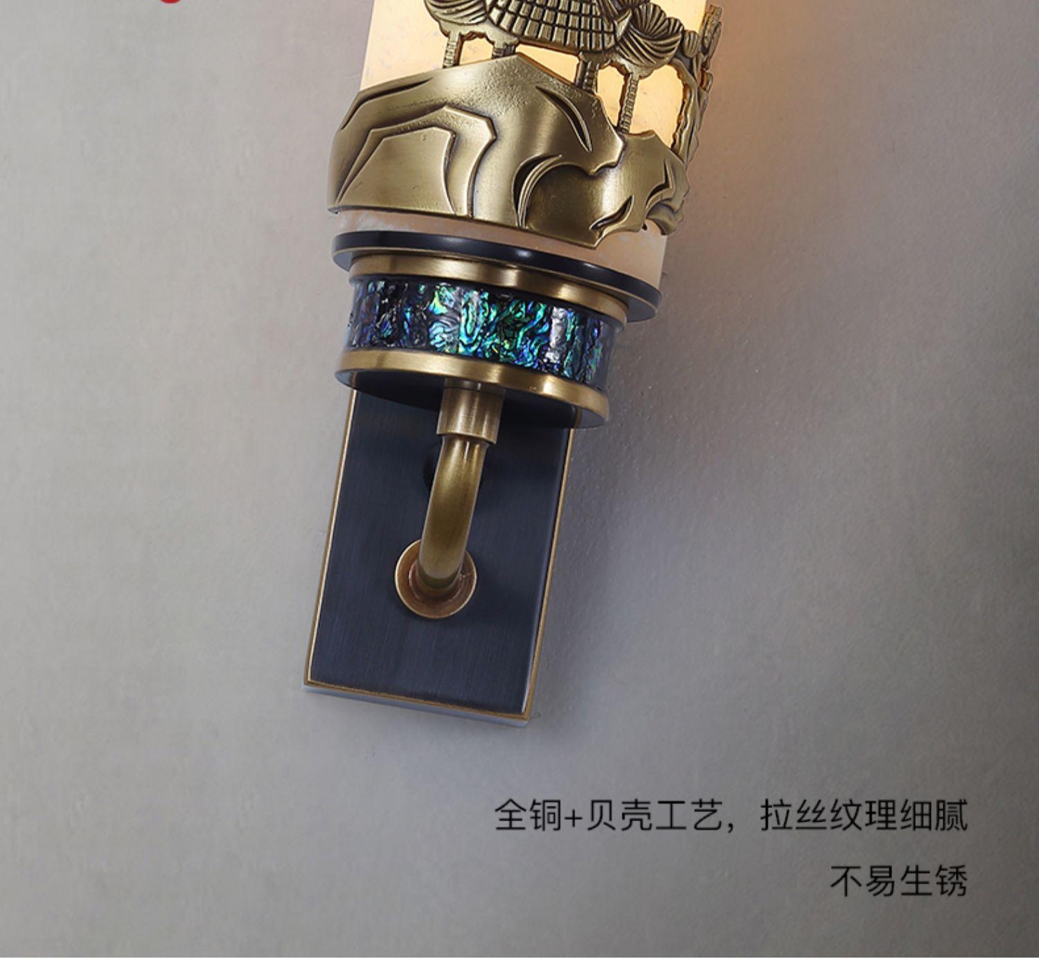 Nueva lámpara de pared de fondo de mármol de cobre puro estilo chino, sala de estar, pasillo de villa de alta gama, iluminación LED de ambiente, dormitorio, mesita de noche