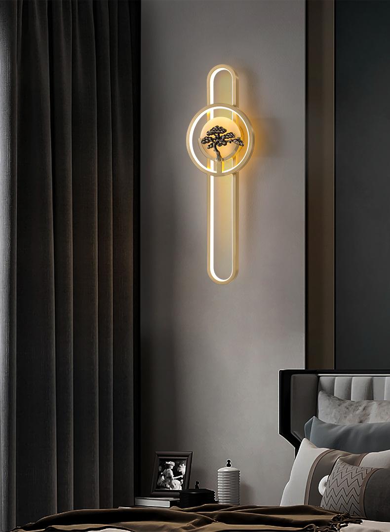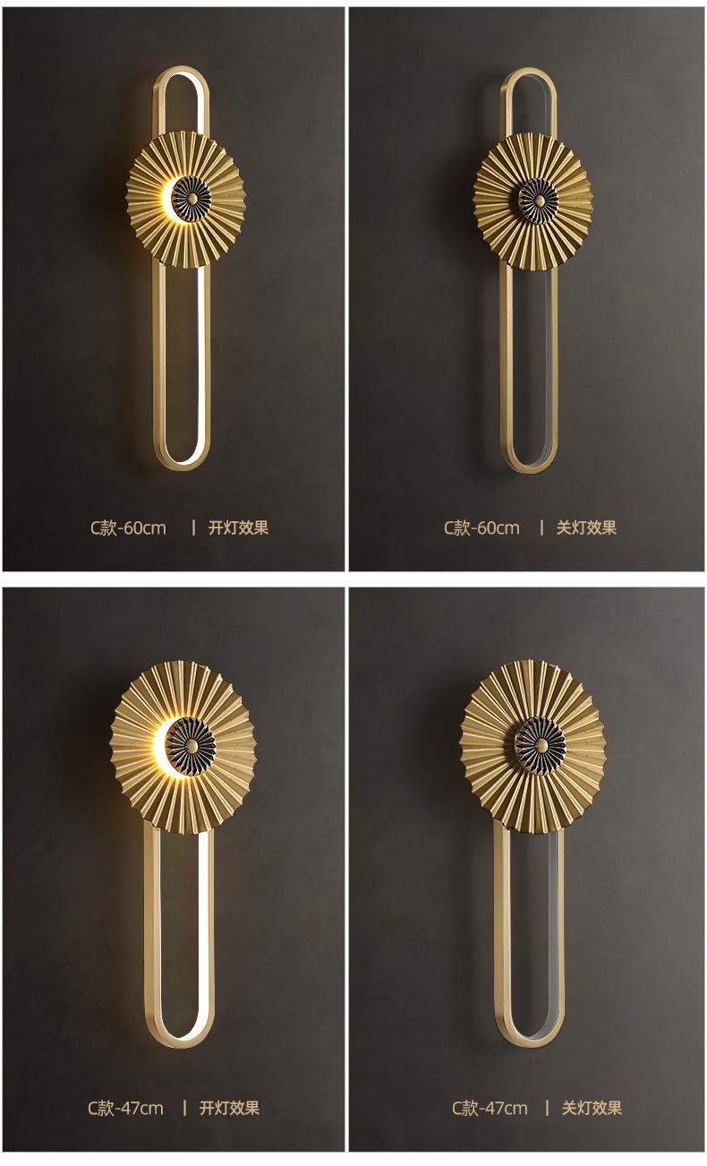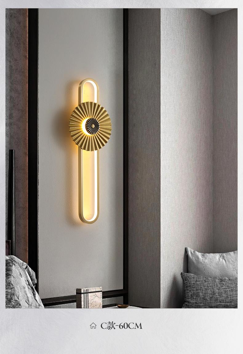 Lámpara de Pared LED de Noche para Dormitorio, Lámpara Simple para Sala de Estar, Lámpara de Pared para Fondo de TV, Lámpara de Pared para Pasillo de Escalera, Todo Cobre