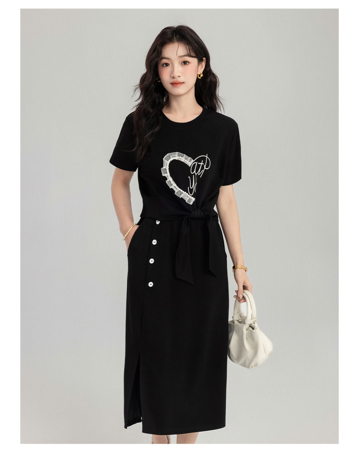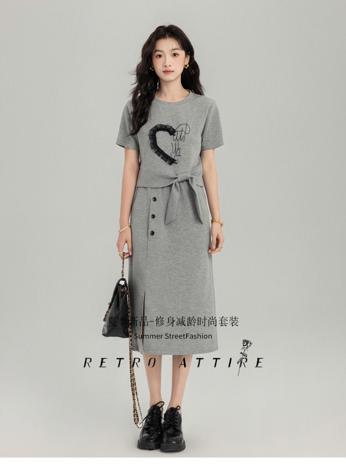 Traje Casual de Moda 2025 Verano Nuevo Top de Lazo de Manga Corta Falda Conjunto de Dos Piezas Reductor de Edad Trendy 915 #