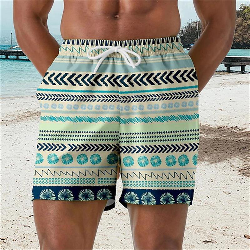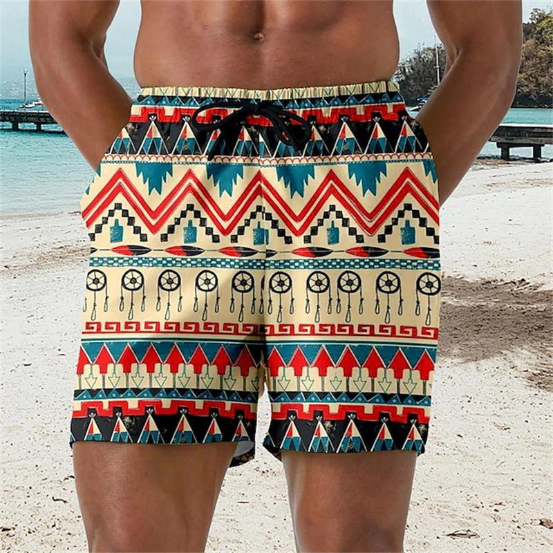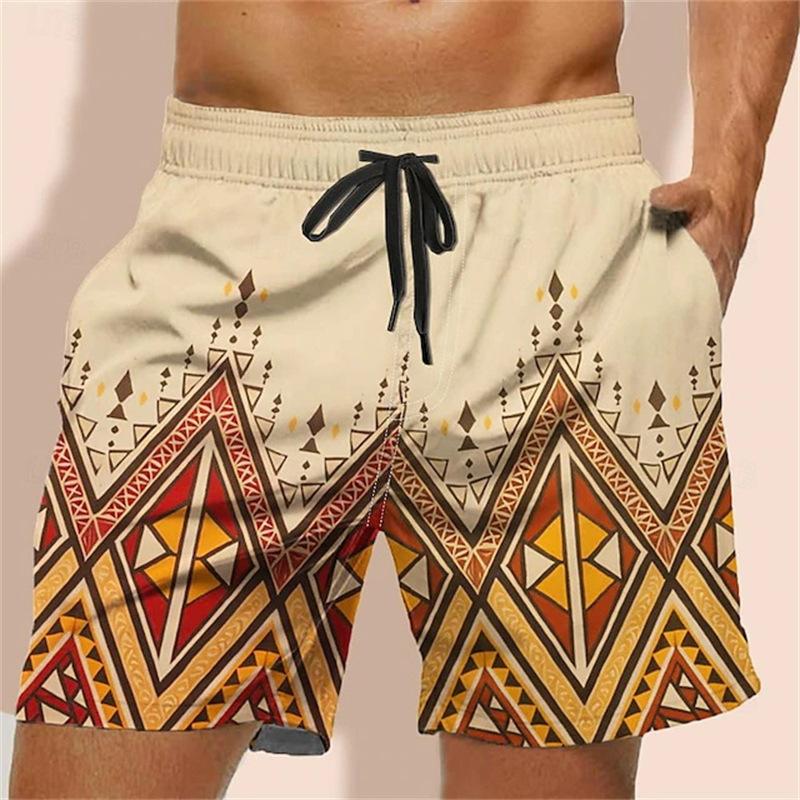 Compra Patrón Étnico Hawaiano Shorts de Playa para Hombre Patrón Geométrico Impresión 3D Traje de Baño para Hombres y Mujeres Nuevas Vacaciones de Verano al por mayor en Joom.pro