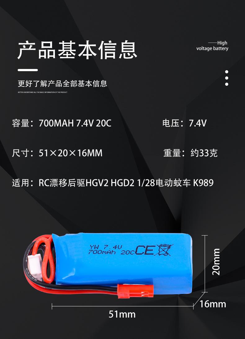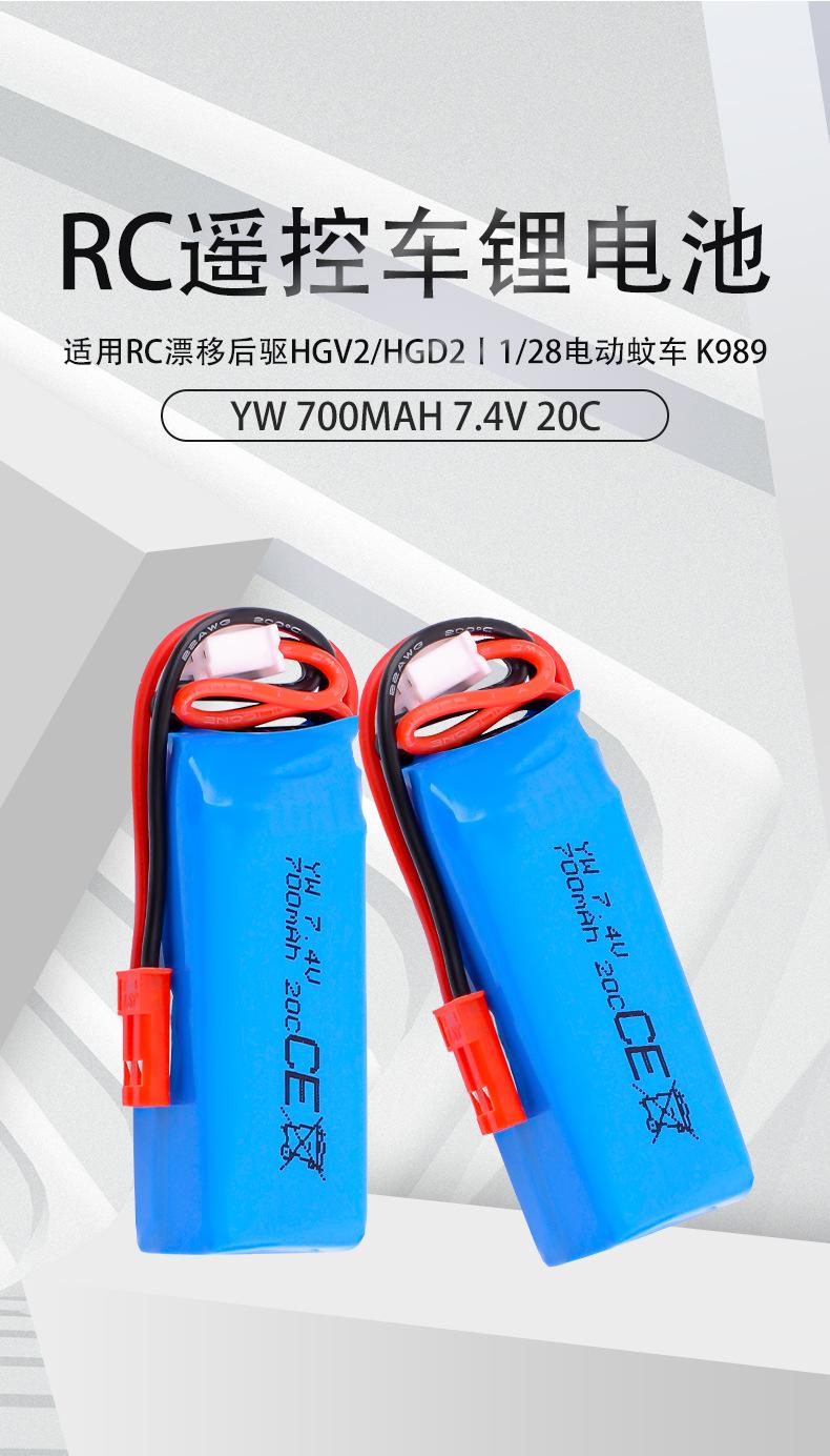 Batería de Litio 7.4V 700Mah Adecuada para Rc Drift Tracción Trasera Hgv2 Hgd2 K989 1/28 Coche Eléctrico Mosquito