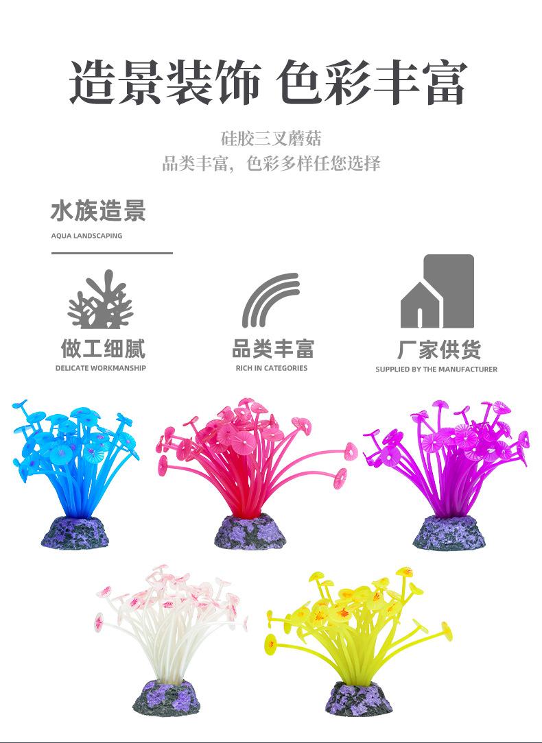Adornos Paisajísticos para Acuario Coral Hongo de Tres Puntas Coral Simulado Silicona Ventas Directas de Fabricante