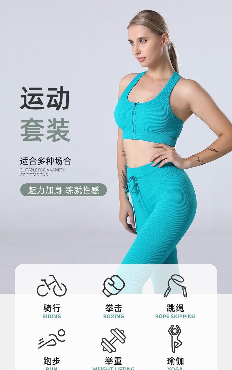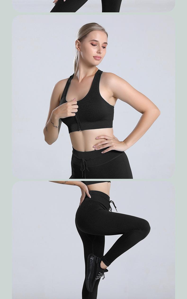 Traje de Yoga sin Costuras con Cierre, Sujetador con Cierre, Transpirable, Cordón Abdominal, Pantalones de Yoga, Correr, Absorción de Impactos, Ajustado, Ropa de Yoga