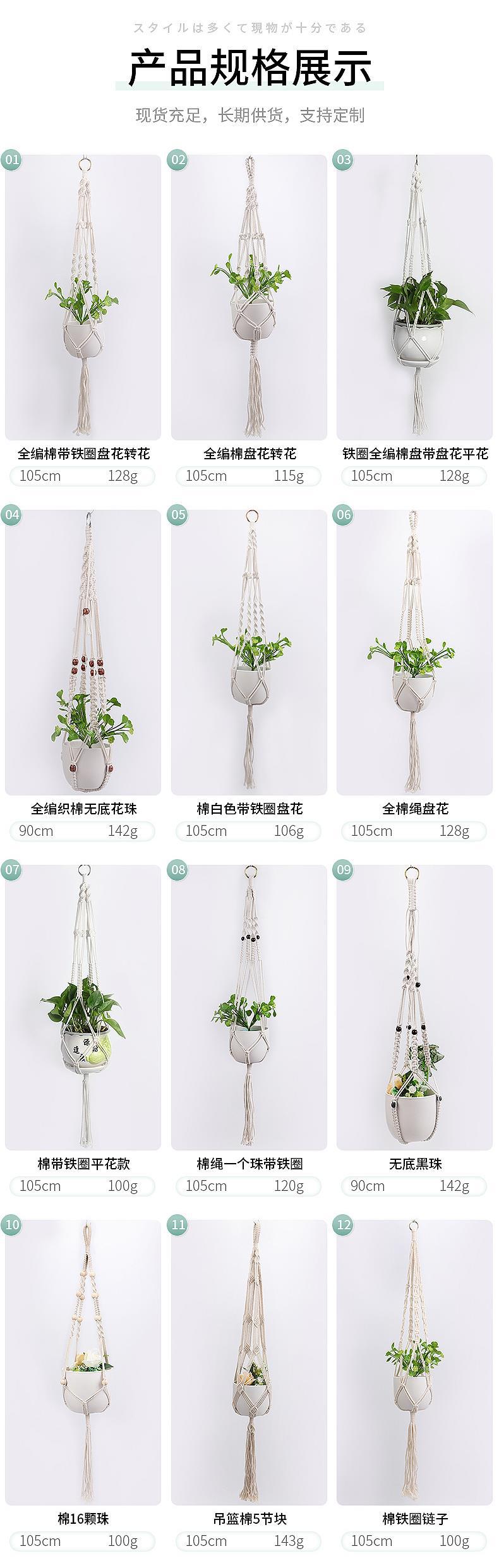 Jardinería Transfronteriza Maceta Bolsa de Red Tejida a Mano Creativa Planta Verde Colgante Bolsa de Red Estilo Nórdico Cuerda de Algodón Cesta Colgante de Pared