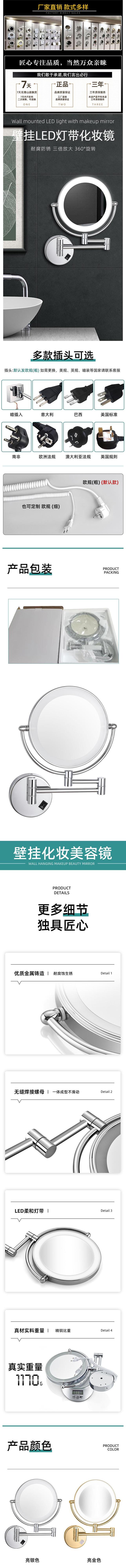 Espejo Cosmético Led con Luz Hotel Montado en la Pared Telescópico Plegable Espejo de Belleza Luz de Relleno de Alta Definición Espejo de Vanidad Espejo de Baño