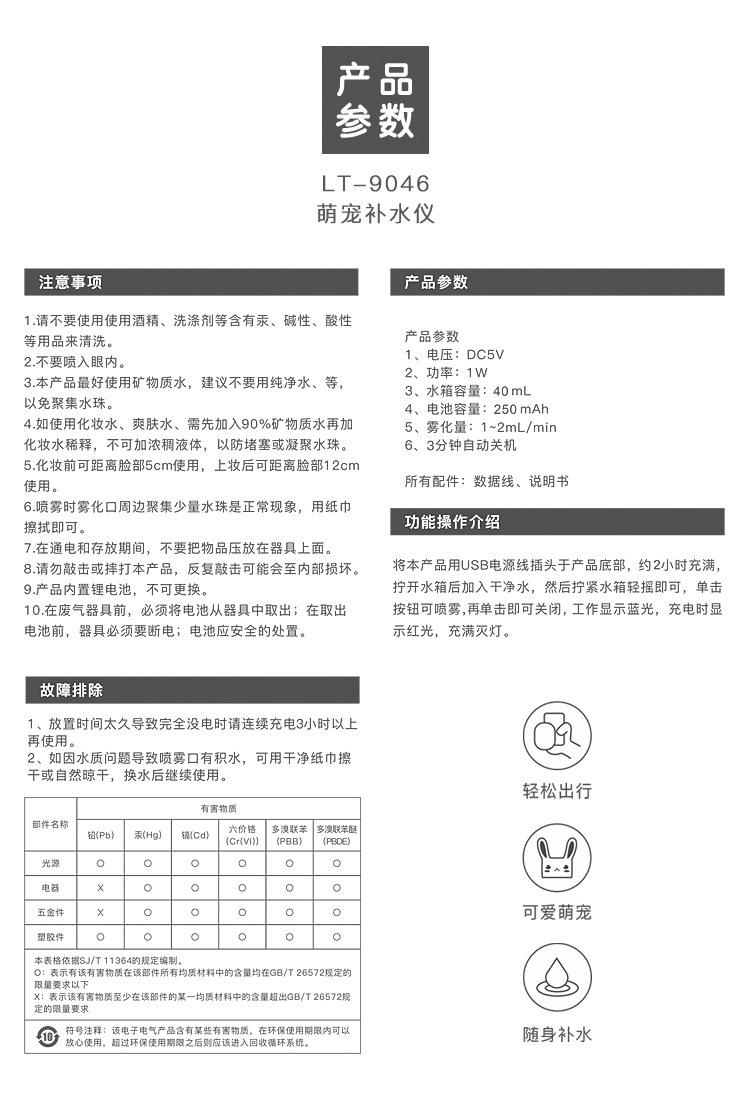 Instrumento de Carga e Hidratación Doméstico Personalizable Instrumento de Belleza para Prueba de Piel de Mano Humidificador Instrumento de Hidratación Vaporizador Facial Máquina de Pulverización