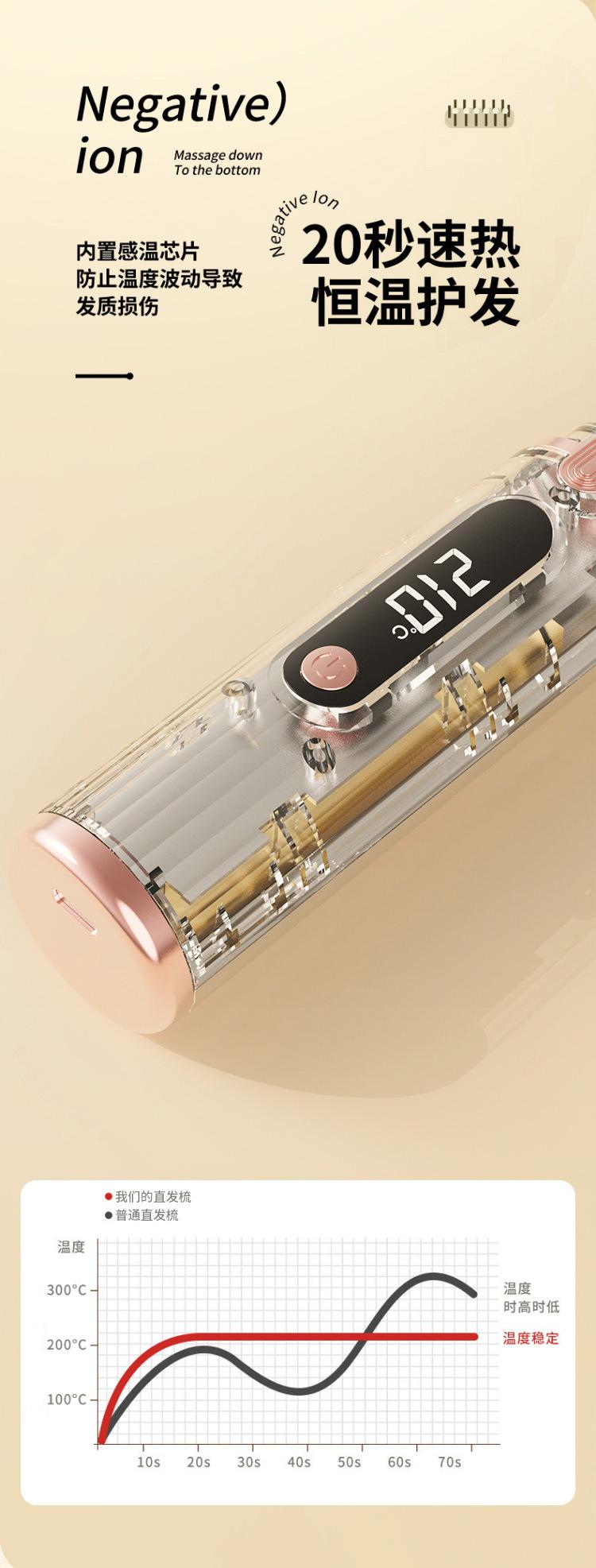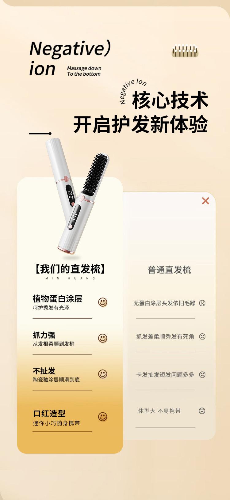 Nuevo Peine Inalámbrico Recargable para Alisar el Cabello Transfronterizo que No Daña el Cabello, Mini Tabla Alisadora Portátil Peine Eléctrico de Iones Negativos Alisador de Cabello