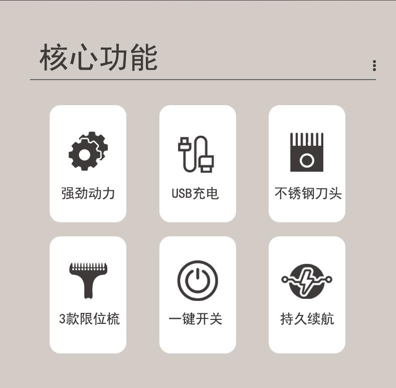Accesorios: 3 peines (1/2/3 mm), un cepillo de limpieza, un cable USB
