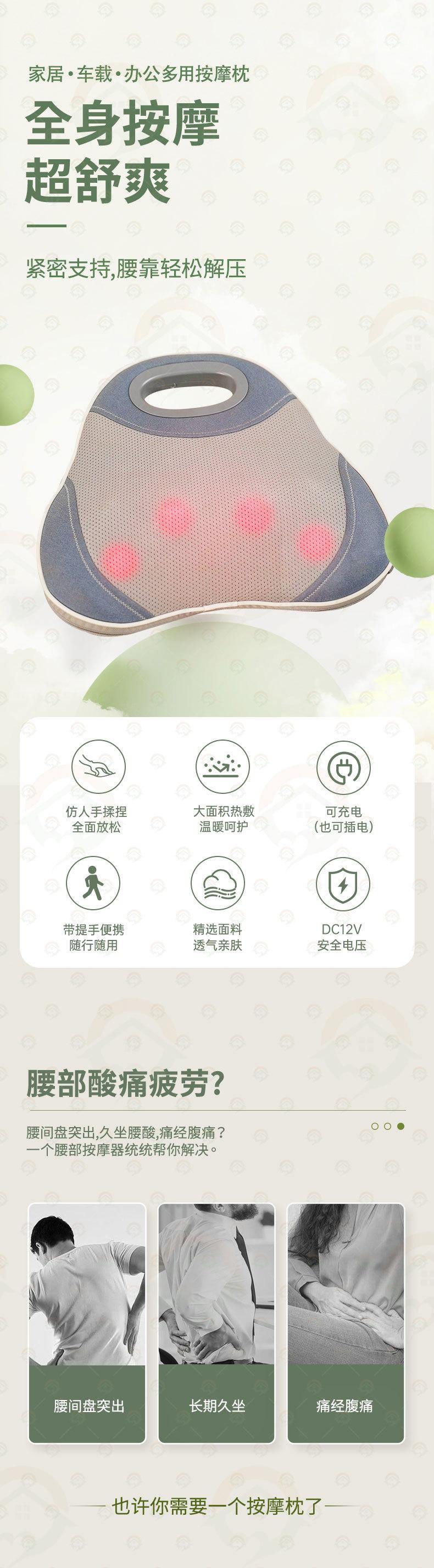 Almohadilla de Masaje Eléctrica de Compresa Caliente Almohada de Masaje Soporte Lumbar Masaje Cintura Espalda Cojín Masajeador Amasado Multifuncional