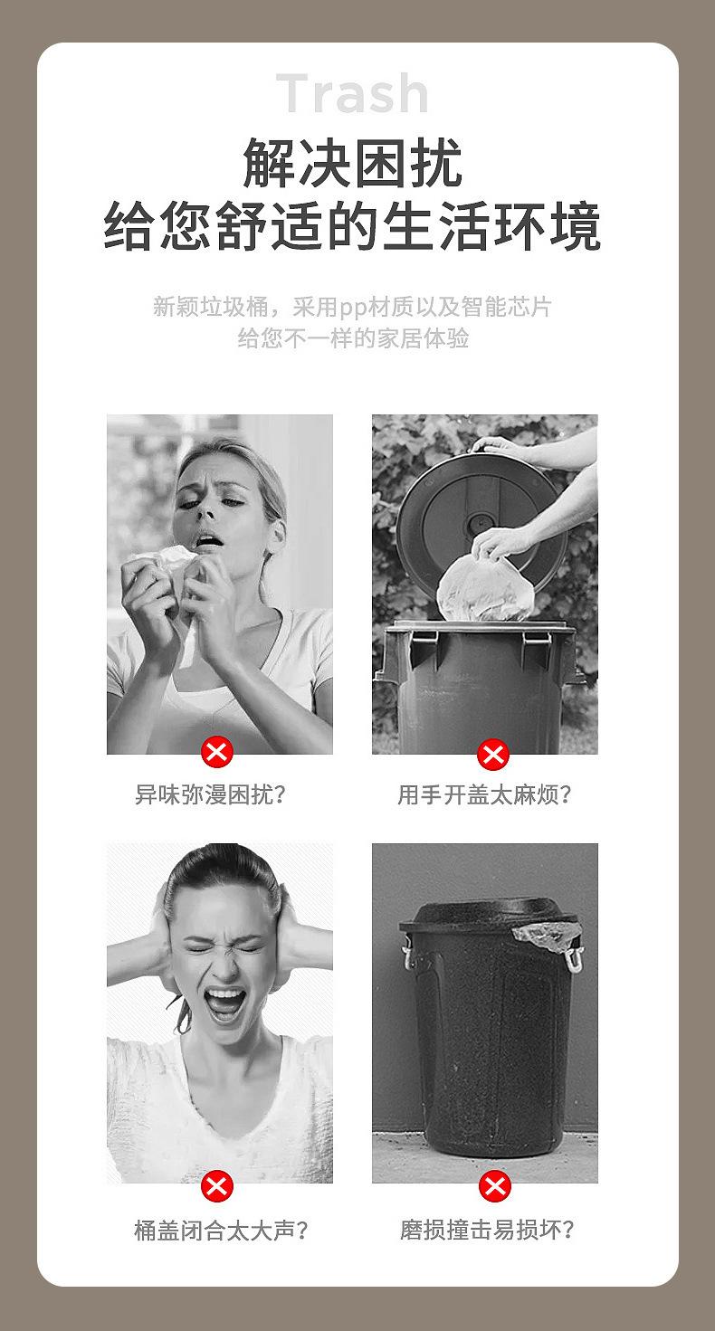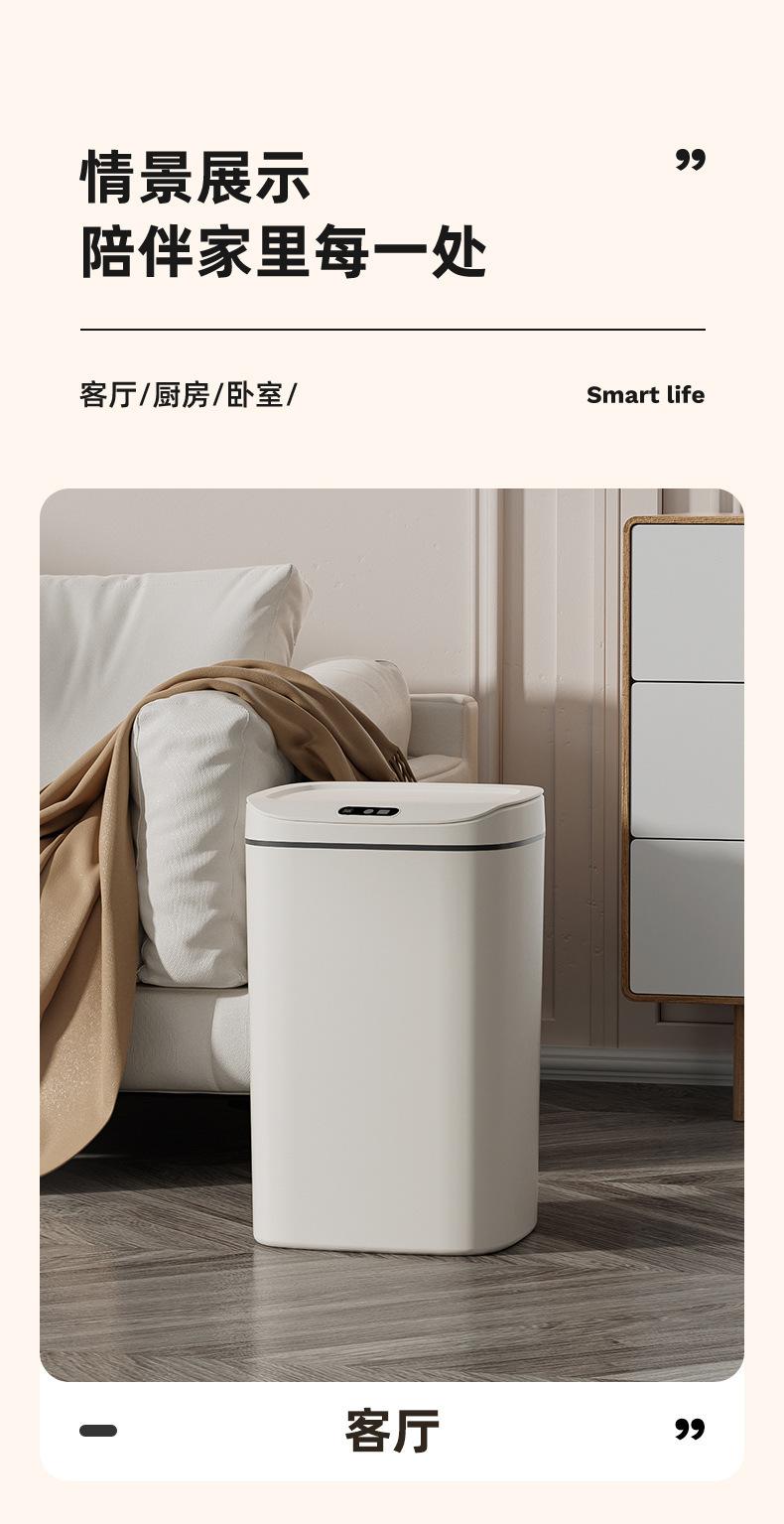 Bote de Basura Inteligente con Sensor Automático para Baño, Manos Libres, Diseño Simple para Sala de Estar, Cocina, Baño Doméstico, Gran Capacidad, Transfronterizo