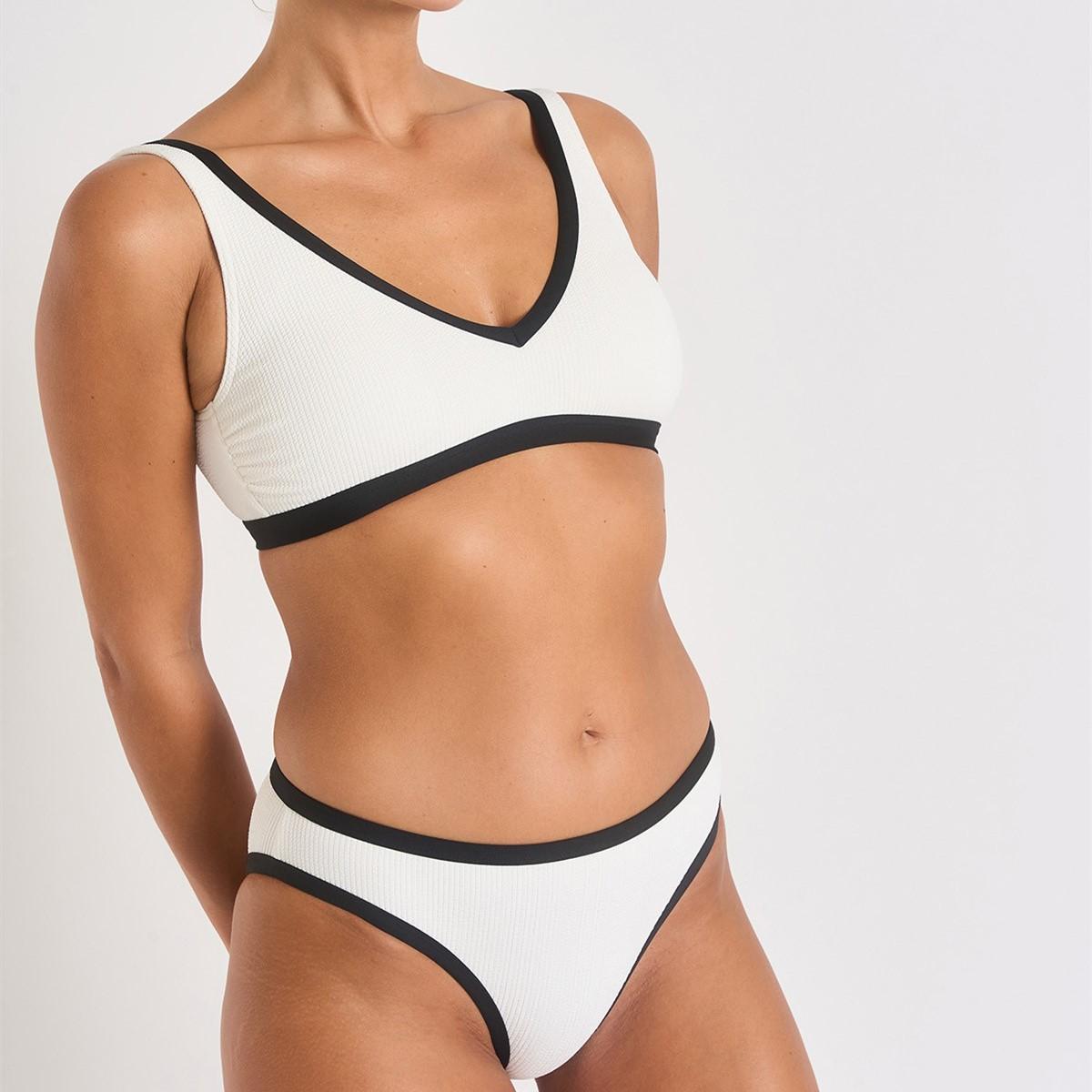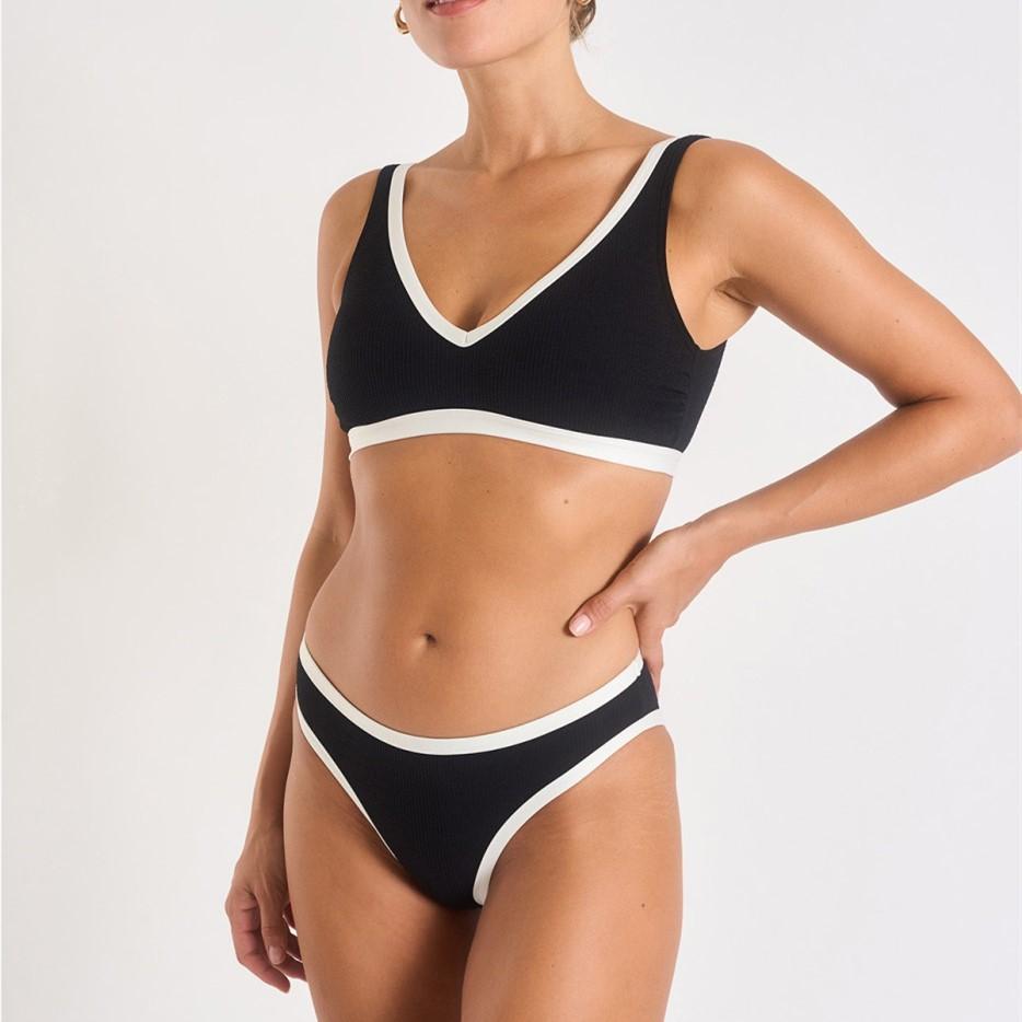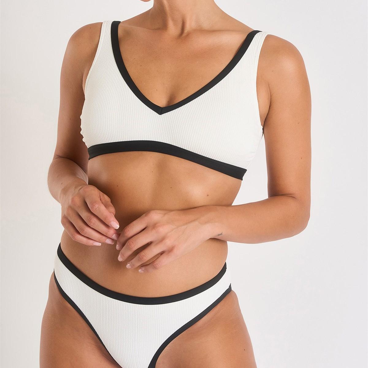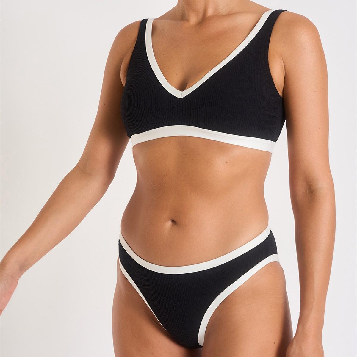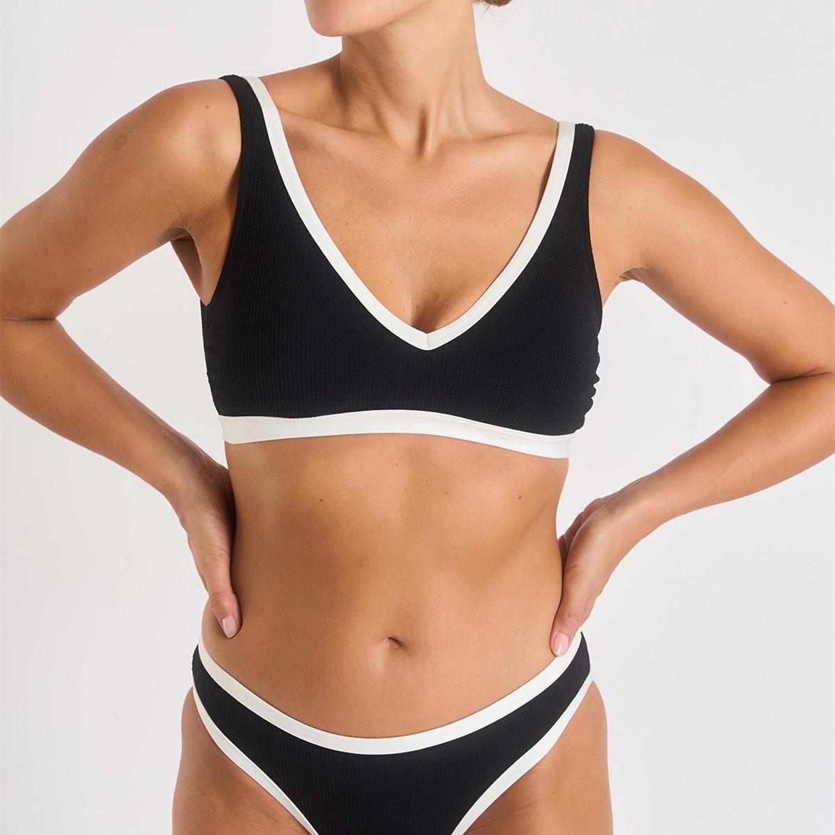 Traje de baño de dos piezas personalizado 2023 para mujer europeo y americano de Amazon con bikini con almohadilla en el pecho Traje de baño bikini de bloques de color para mujer