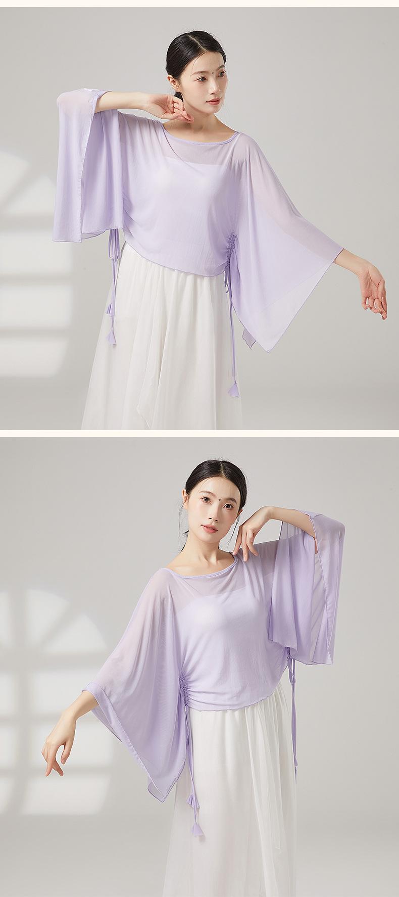 Danza Clásica Rima Corporal Elegante Blusa Top de Malla Holgada con Cordón Ropa de Práctica de Danza Moderna