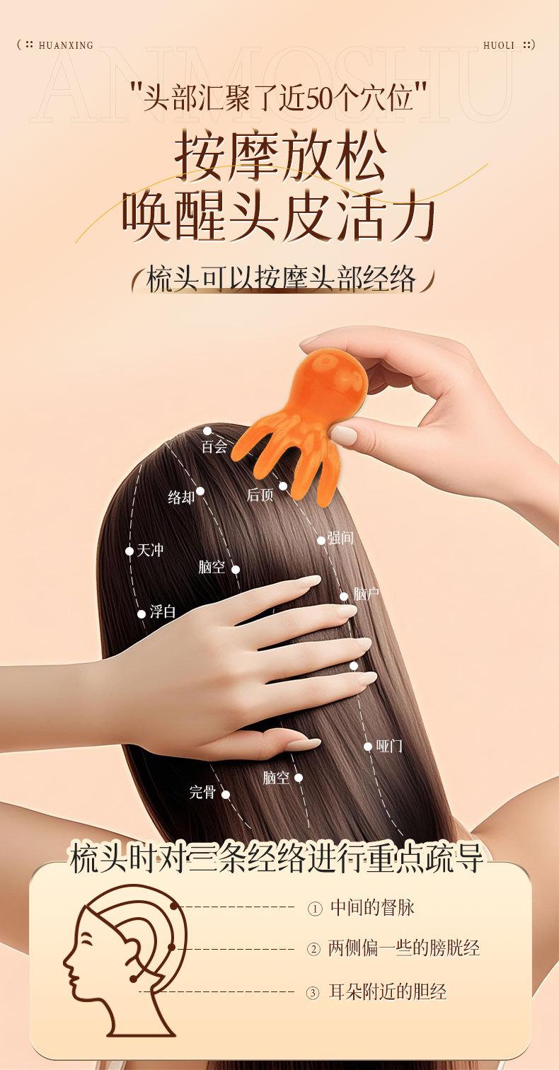 Peine de Masaje Pulpo Peine Pulpo Masajeador de Cuero Cabelludo Acupunto Meridiano de la Cabeza Peine de Terapia para la Cabeza Dientes Grandes y Anchos Venta al por Mayor