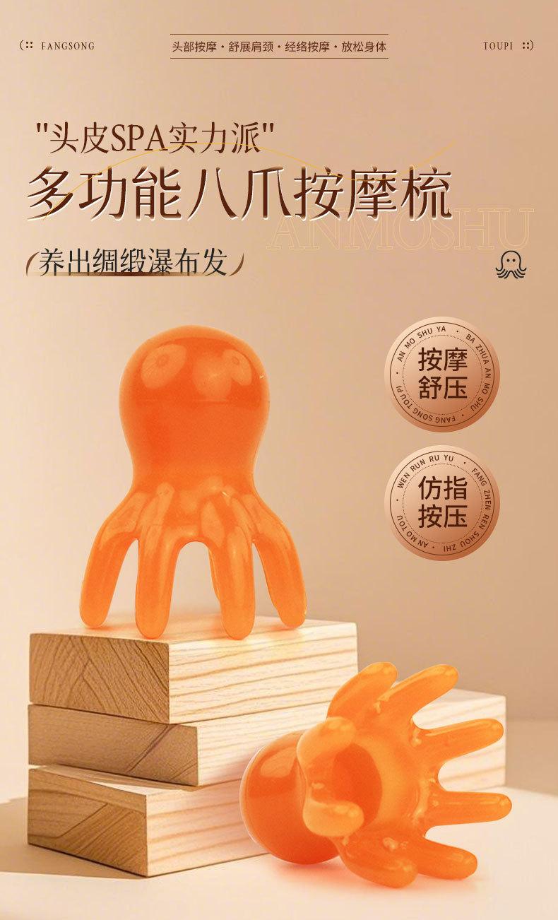 Large octopus massage comb (resin), Small octopus massage comb (resin), [resin] pink four-in-one massage comb 1 pack