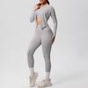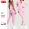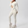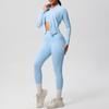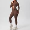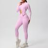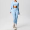 Pantalones de Yoga Ajustados Europeos y Americanos con Cremallera Deportiva de Manga Corta, Chaqueta de Manga Larga con Bolsillo, Ropa de Fitness, Traje de Yoga de Tres Piezas