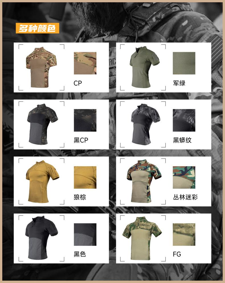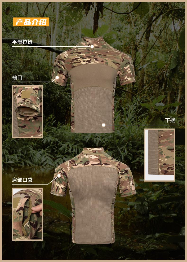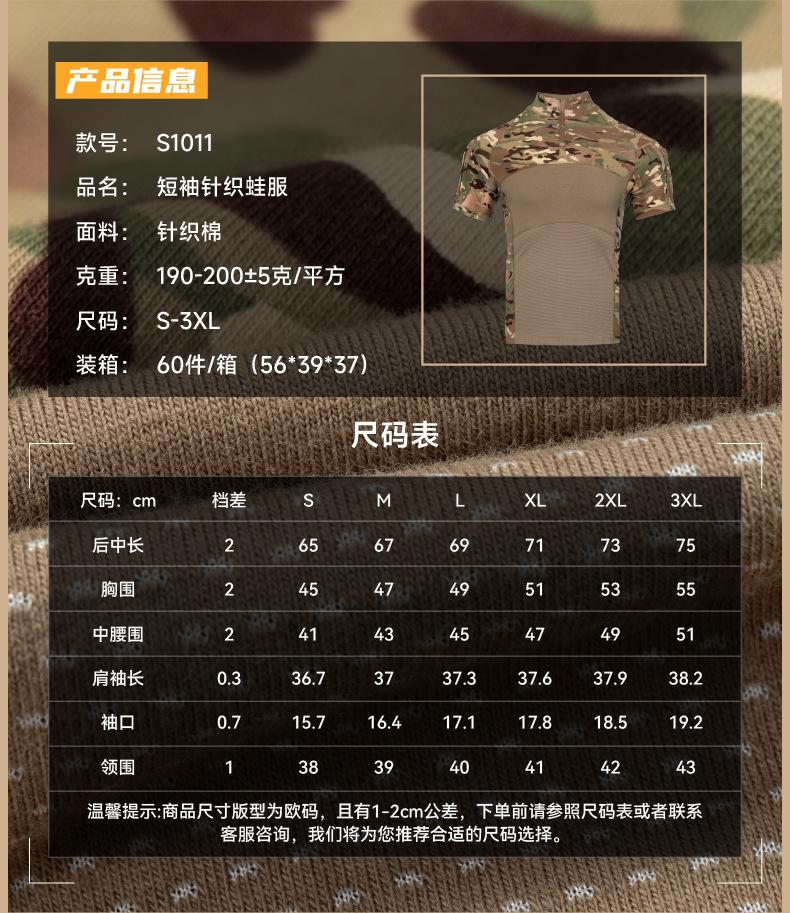 Fronter chaqueta de traje de rana de punto de manga corta verano transpirable elástico traje de rana camuflaje traje táctico de entrenamiento al por mayor