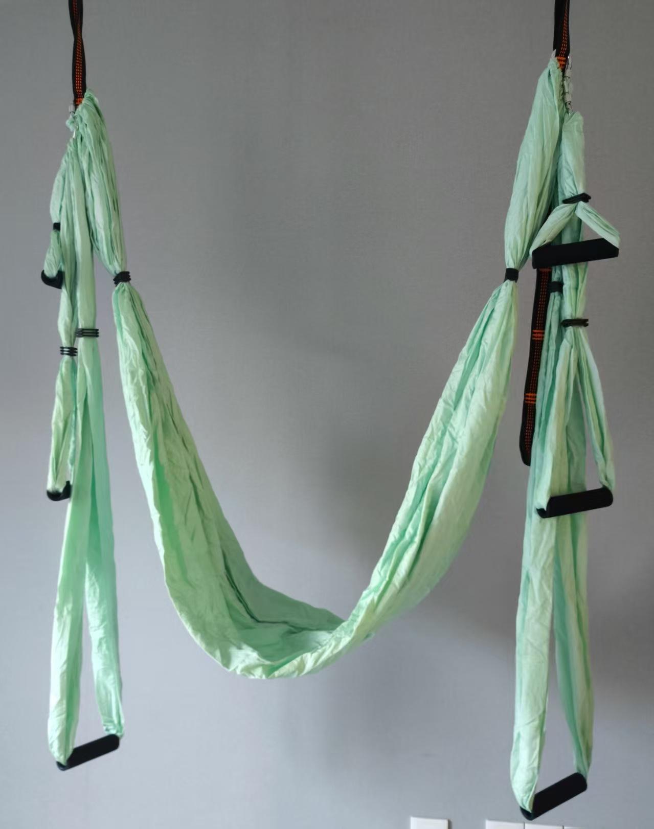 La siguiente es una exhibición de objeto real de la hamaca de yoga verde jade 23#: