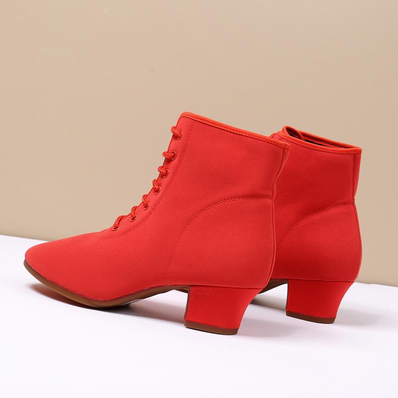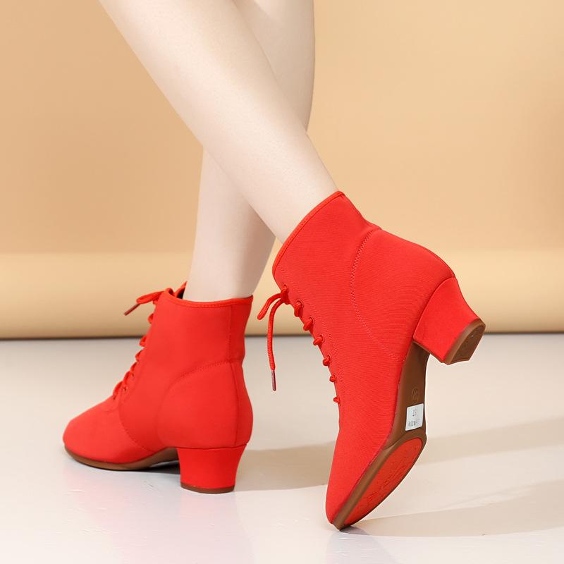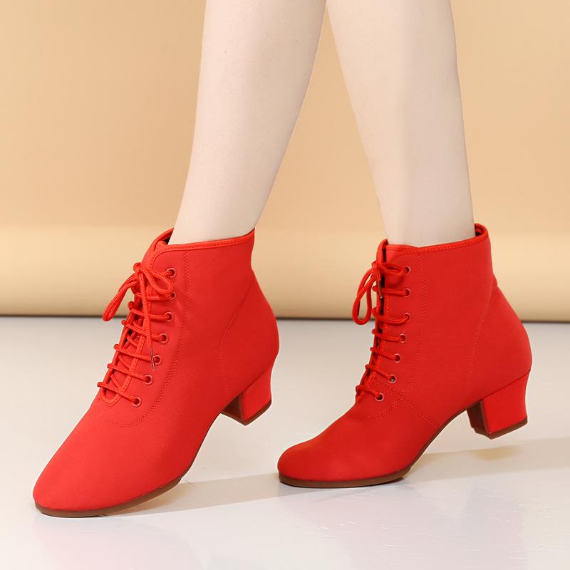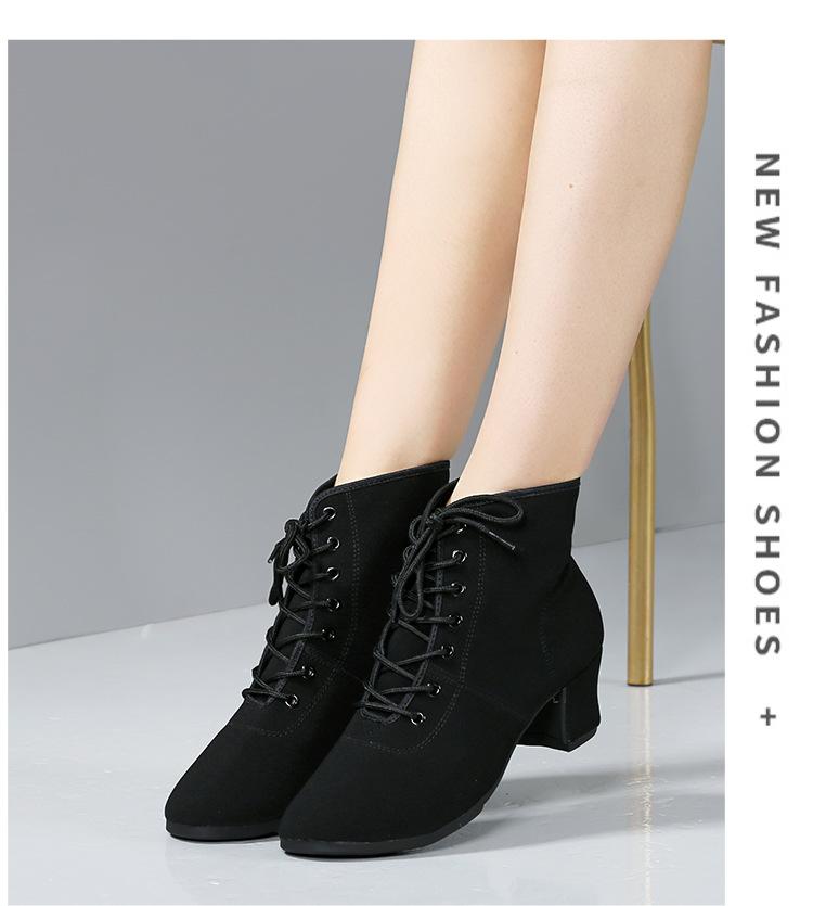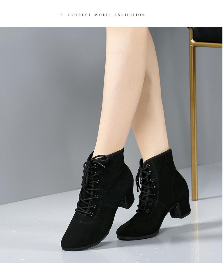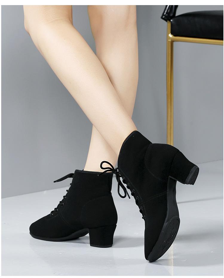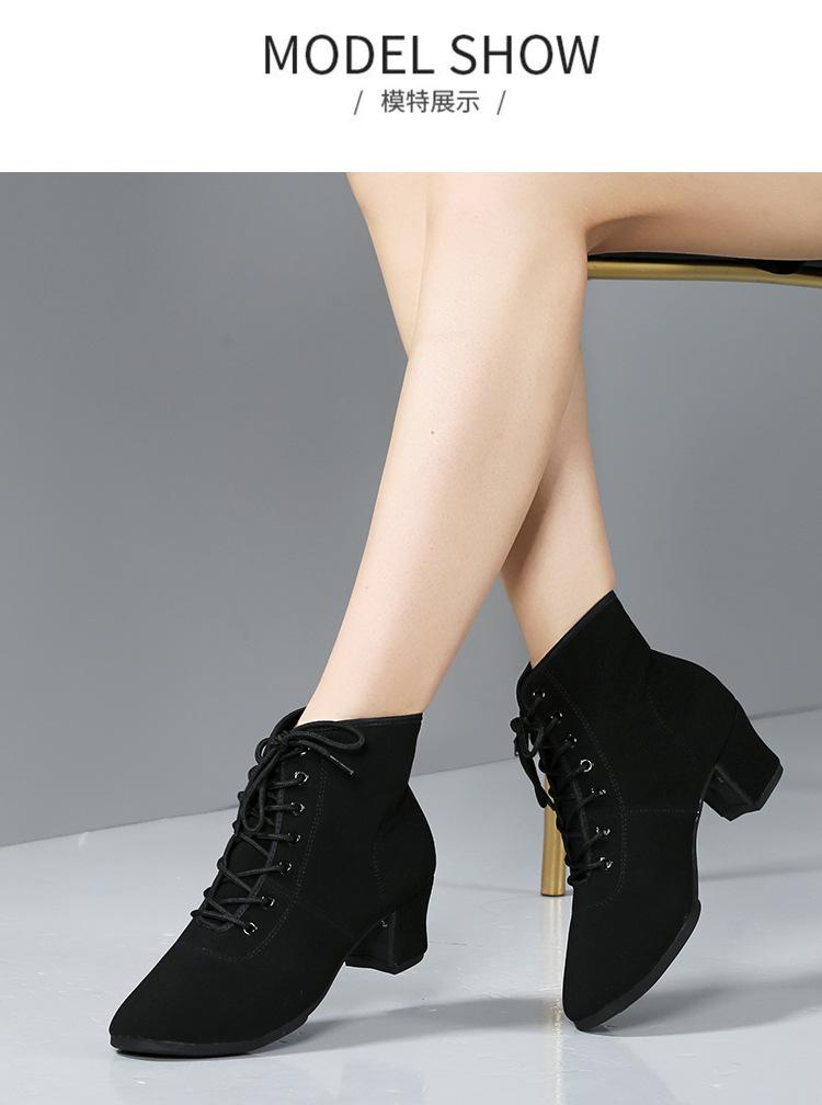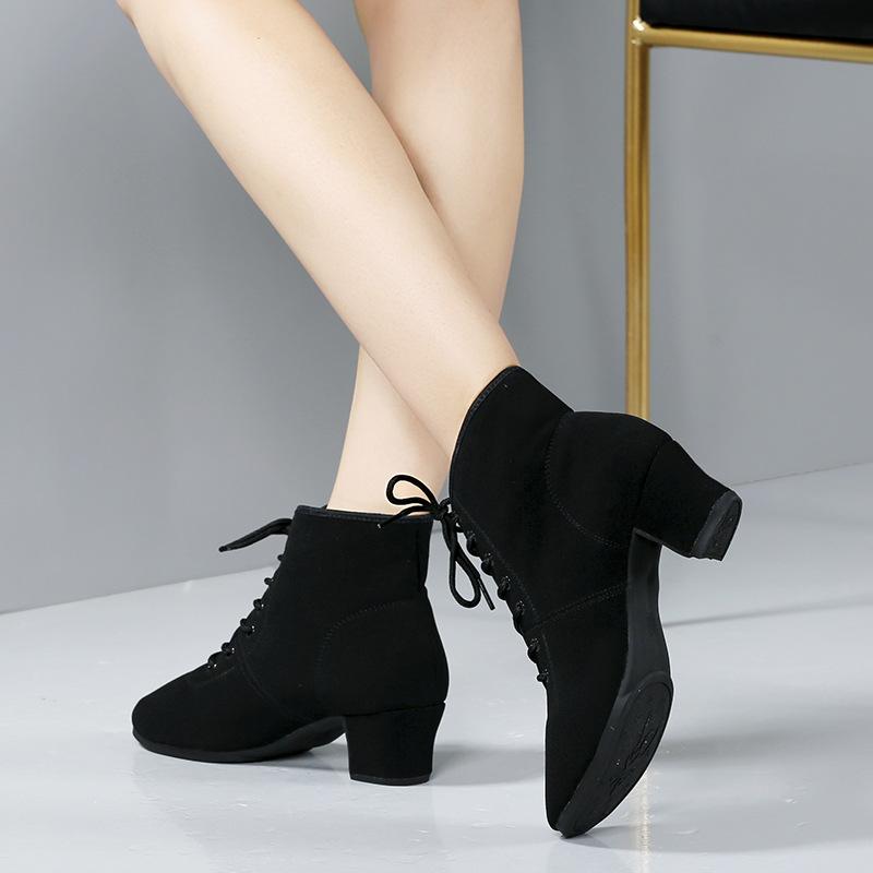 Zapatos de Baile Cuadrado para Mujer Latino Tacón Medio-alto Bota Media para la Mediana Edad y Adultos Mayores Suela Blanda Zapatos de Baile de Cena Jitterbug Baile Casual