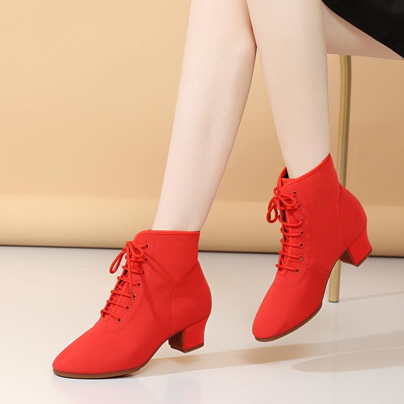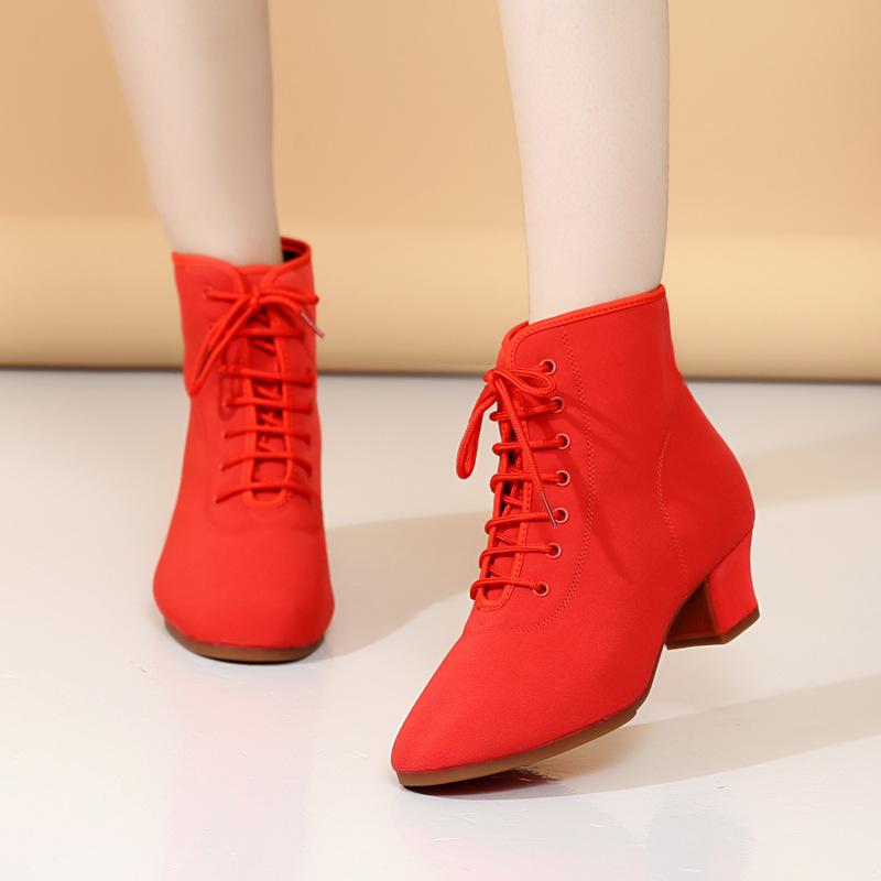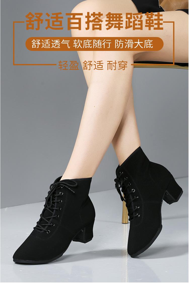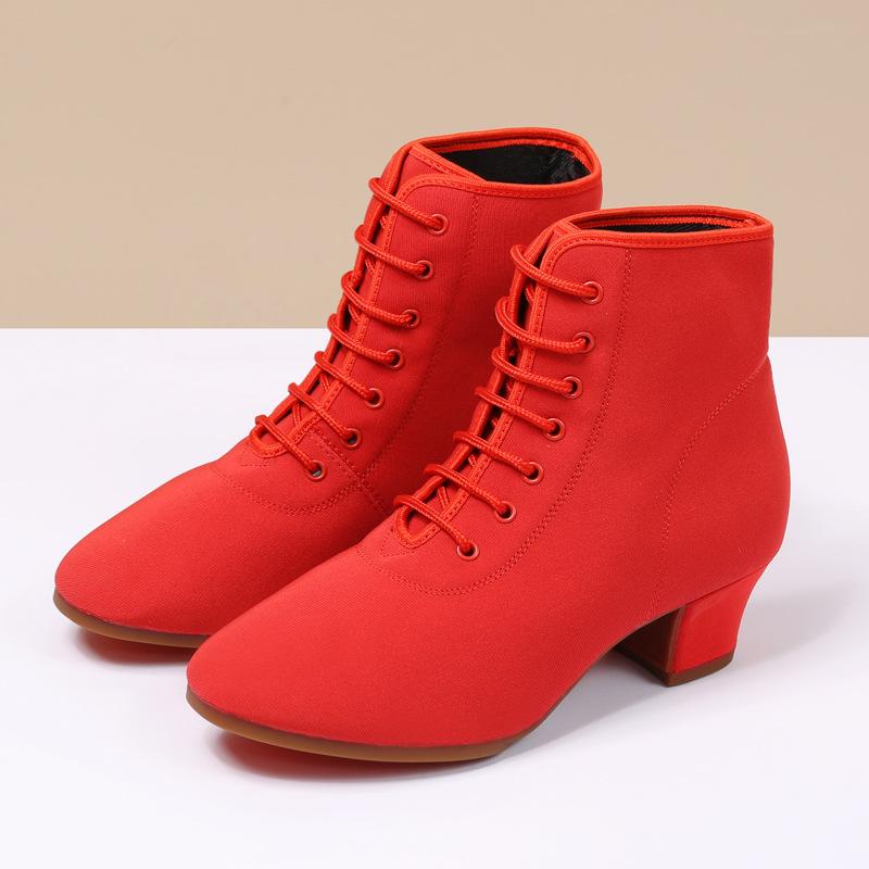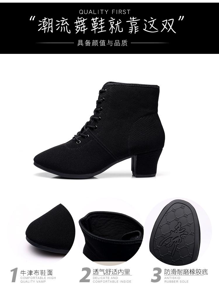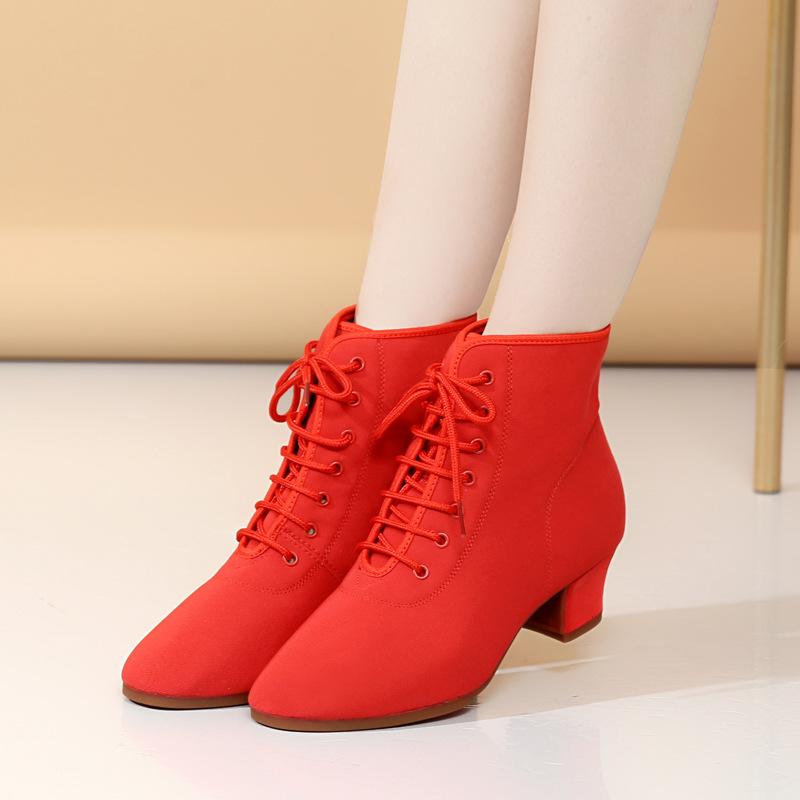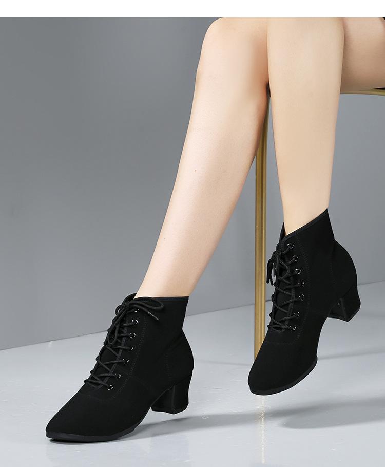Zapatos de Baile Cuadrado para Mujer Latino Tacón Medio-alto Bota Media para la Mediana Edad y Adultos Mayores Suela Blanda Zapatos de Baile de Cena Jitterbug Baile Casual