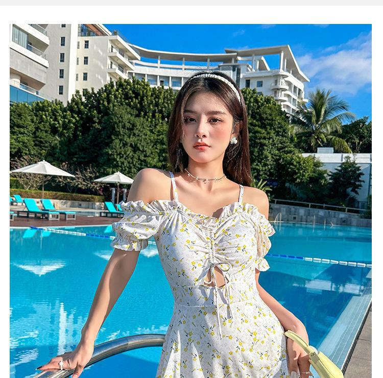 Traje de baño para mujer 2025 Nuevo estilo caliente Cubre-vientre Adelgazante Look Lujuria Pura Una pieza Estilo falda Conservador Traje de baño de alta gama