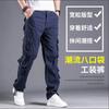 Pantalones Cargo de Algodón Simple para Comercio Exterior para Hombre, Pantalones Casuales, Cintura Elástica, Talla Grande, Pantalones con Bolsillos de Solapa Múltiple, Pantalones Holgados, Pantalones para Sitio de Construcción
