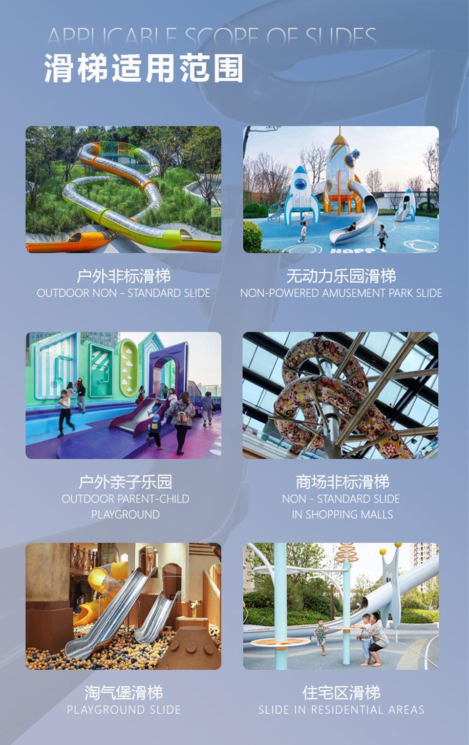 Tobogán de acero inoxidable no estándar para exteriores, parque infantil grande para niños, equipo de desarrollo de instalaciones de entretenimiento escénico sin motor