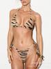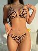 2025 Nuevo Bikini Transfronterizo Europeo y Americano con Cordones Estampado Leopardo Bikini Sexy Dividido Traje de Baño para Mujer