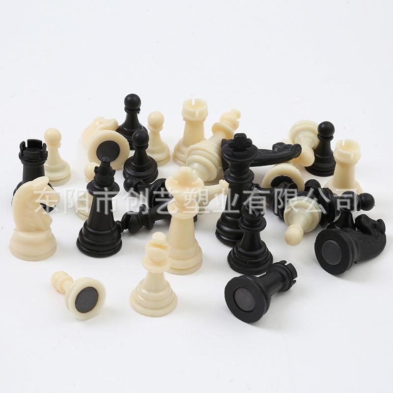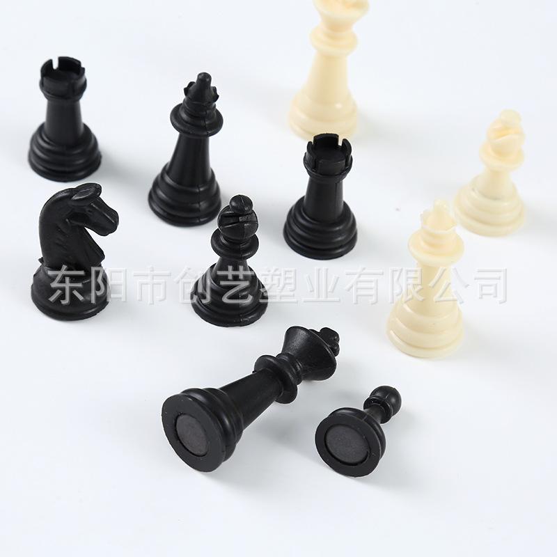 Piezas de ajedrez transfronterizas al por mayor para exteriores, portátiles, piezas de rompecabezas, blanco y negro, juego de ajedrez de 4.5 cm