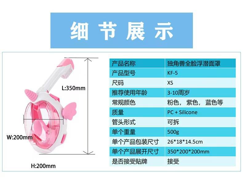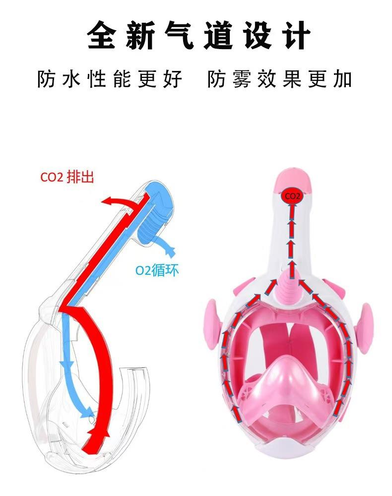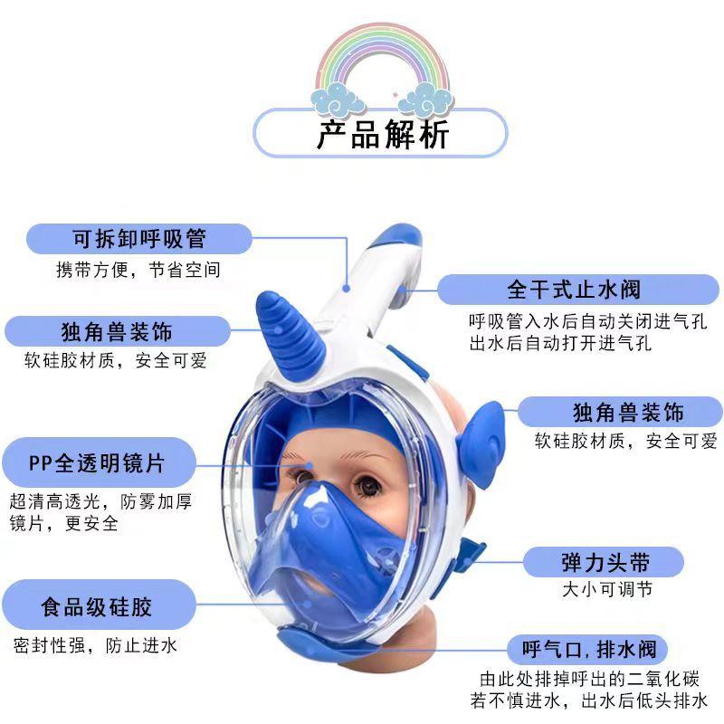 Tubo de respiración de vista panorámica máscara de snorkel de cara completa seca antivaho y antifugas silicona máscara de buceo de cara completa para niños