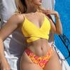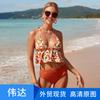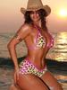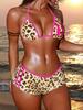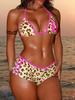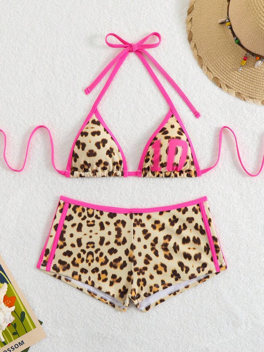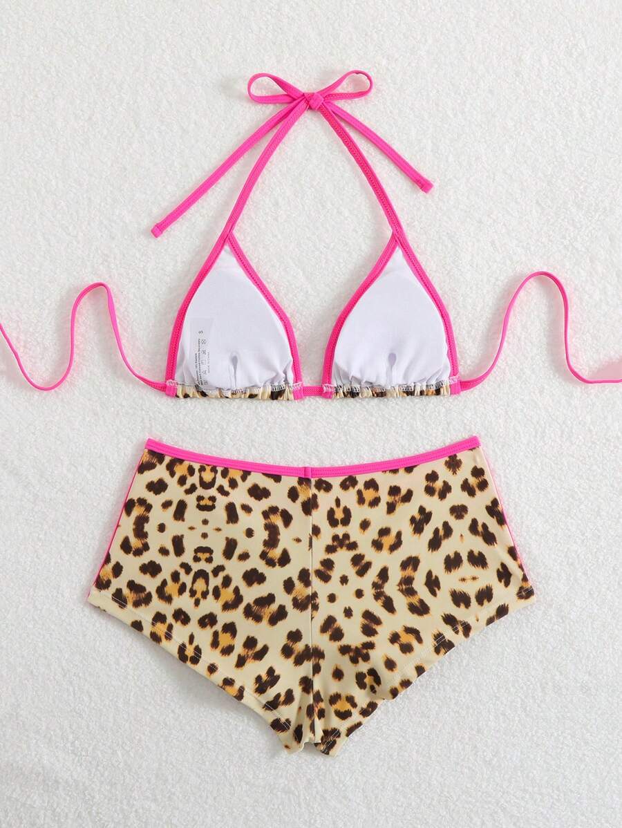 Traje de Baño Nuevo de Comercio Exterior 2025 para Mujer Bikini Leopardo con Tirantes de Contraste Traje de Pantalón Corto Europeo y Americano Picante